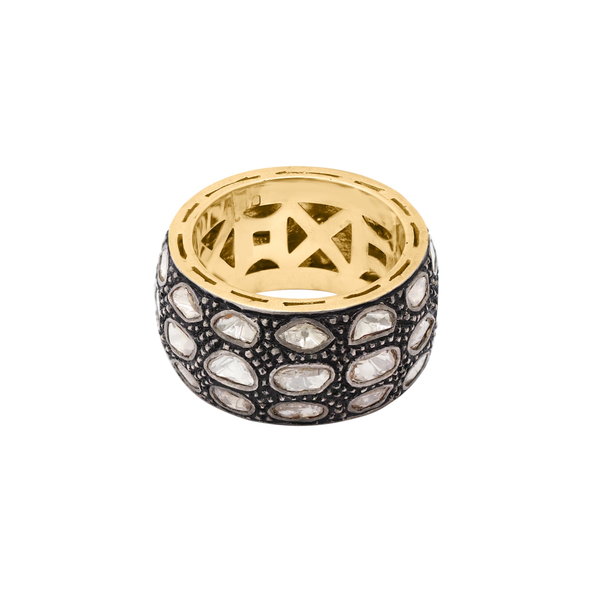 Natural Polki Diamond 925 Silver Gold Plated Band Ring
