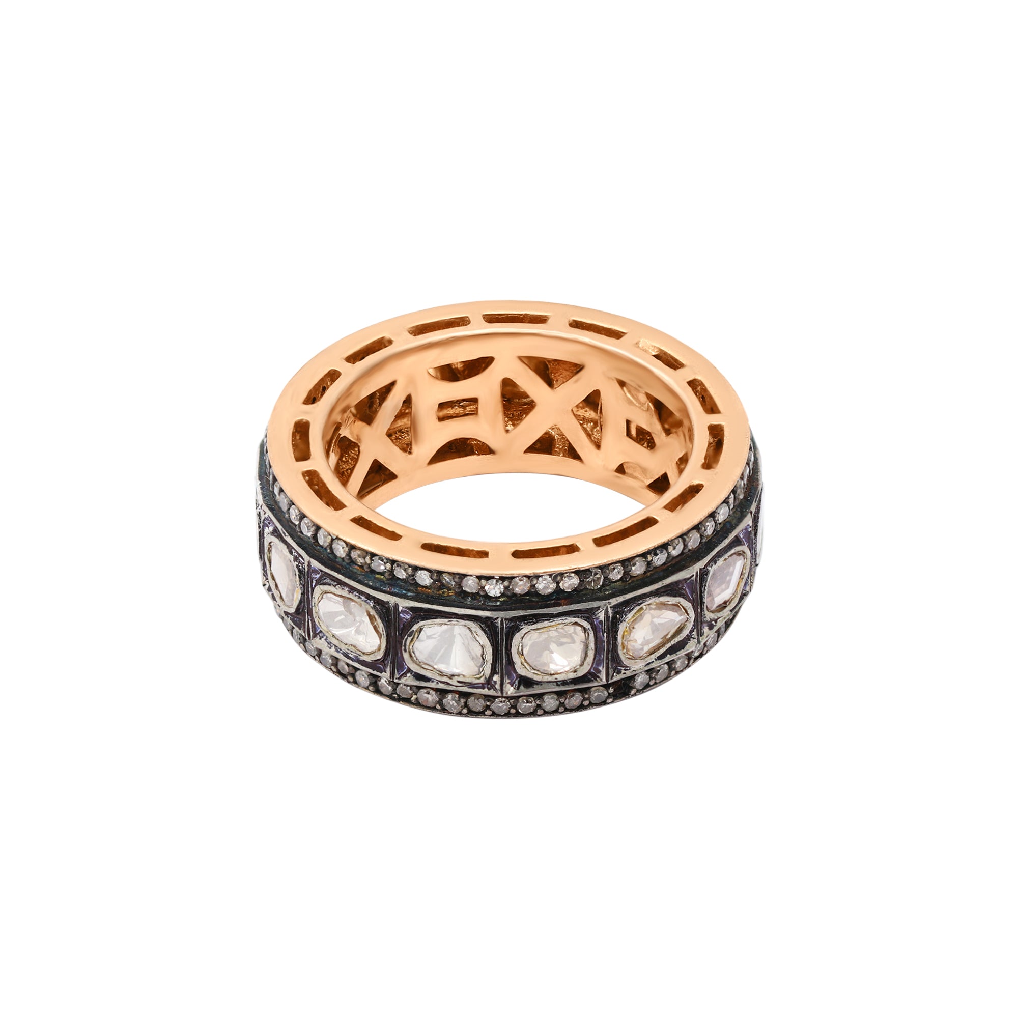 Natural Polki Diamond 925 Silver Gold Plated Band Ring