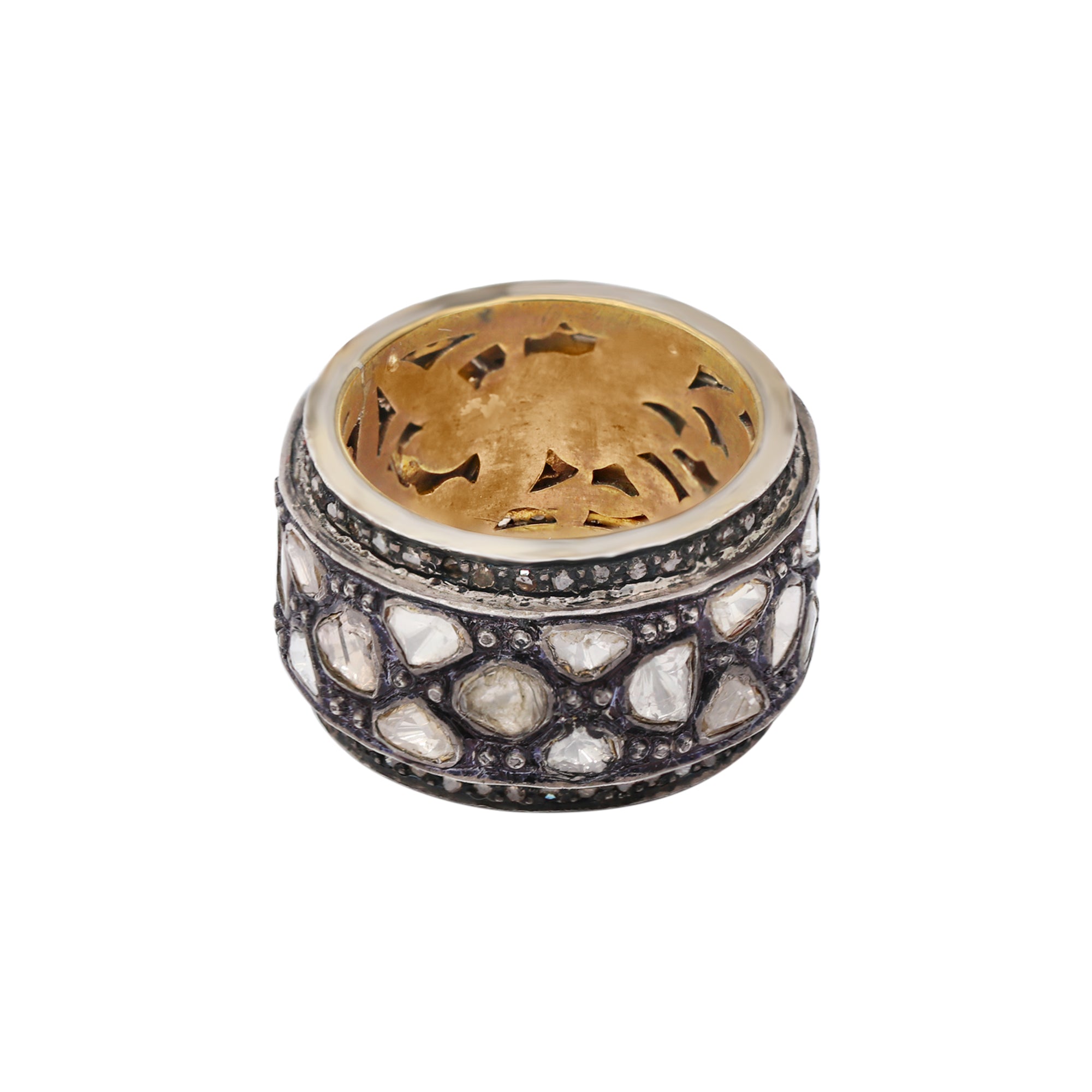 Natural Polki Diamond 925 Silver Gold Plated Band Ring