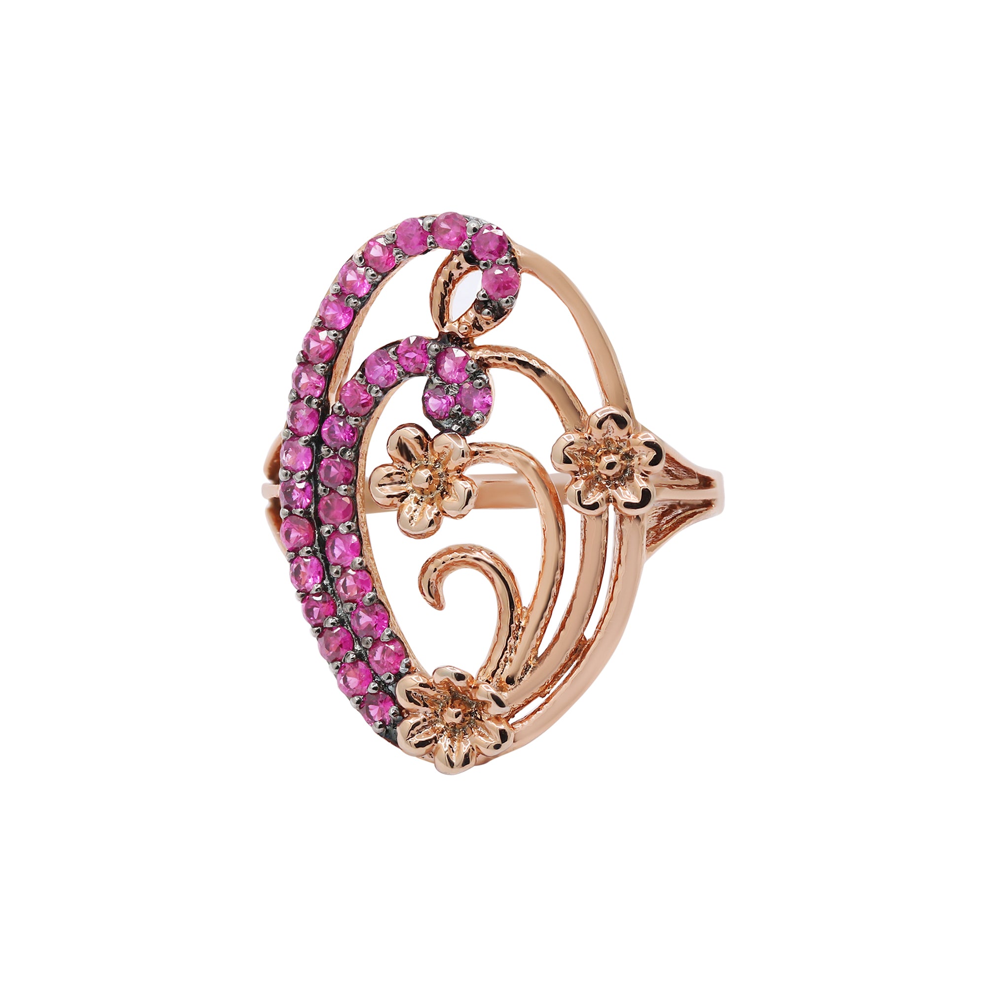 Floral Shape Natural Ruby 925 Silver Rose Gold Plated Designer Ring