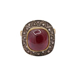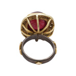 Natural Ruby Gemstone and Diamond 925 Silver Gold Plated Ring