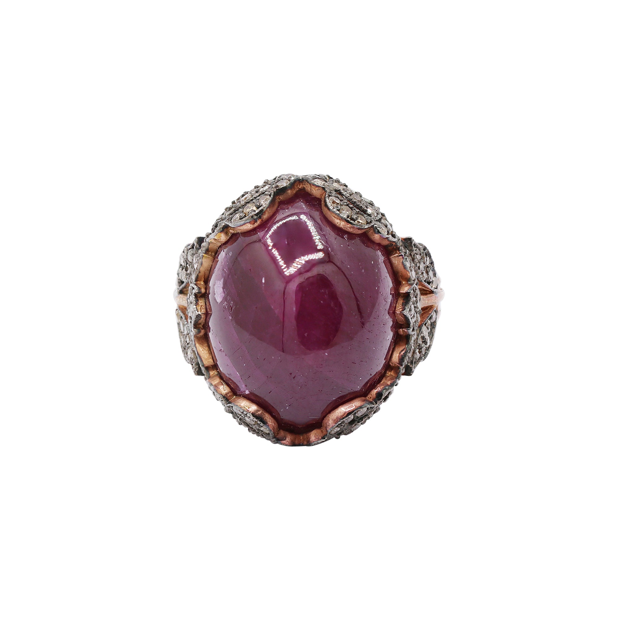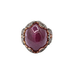Natural Ruby Gemstone With Diamond Rose Gold Plated 925 Sterling Silver Ring