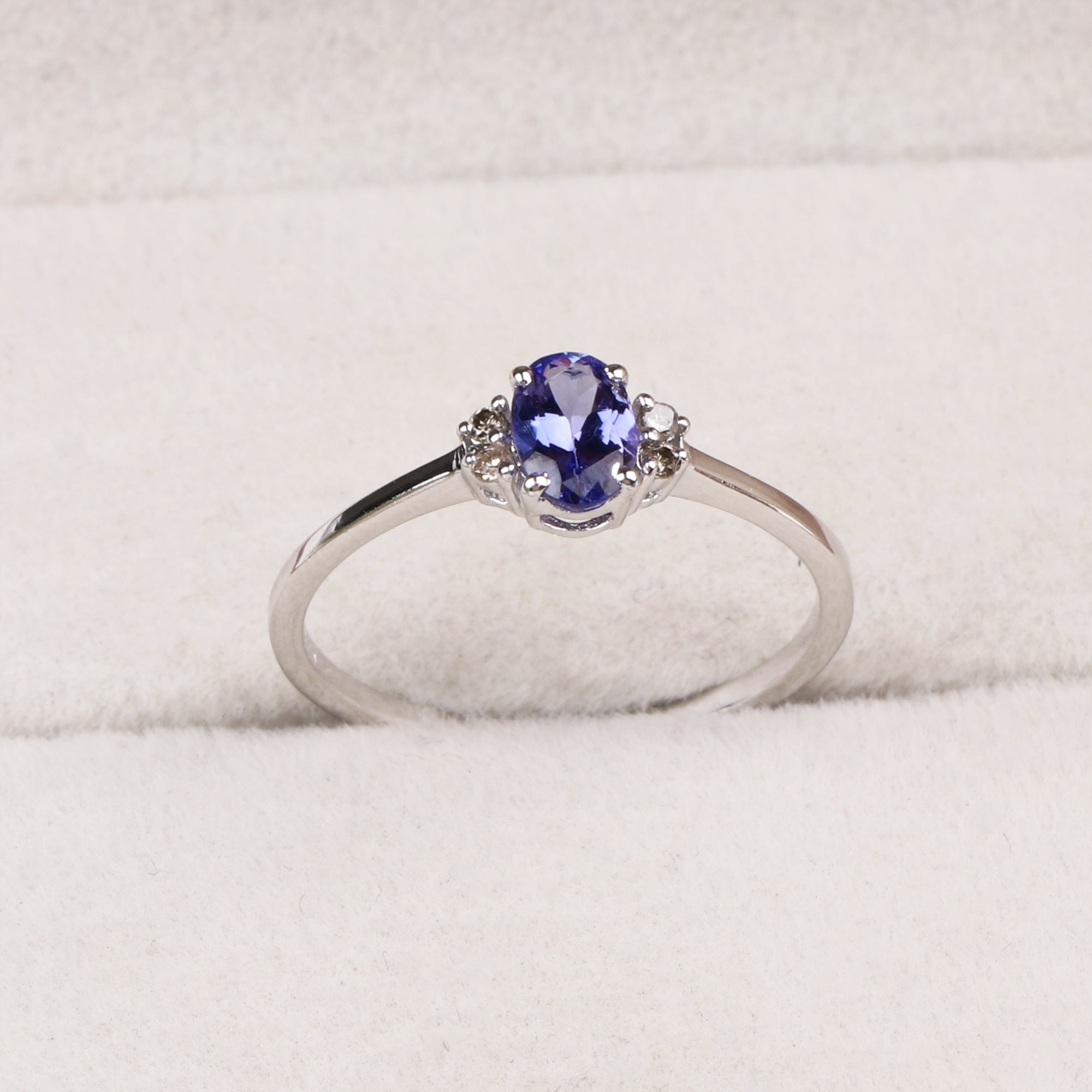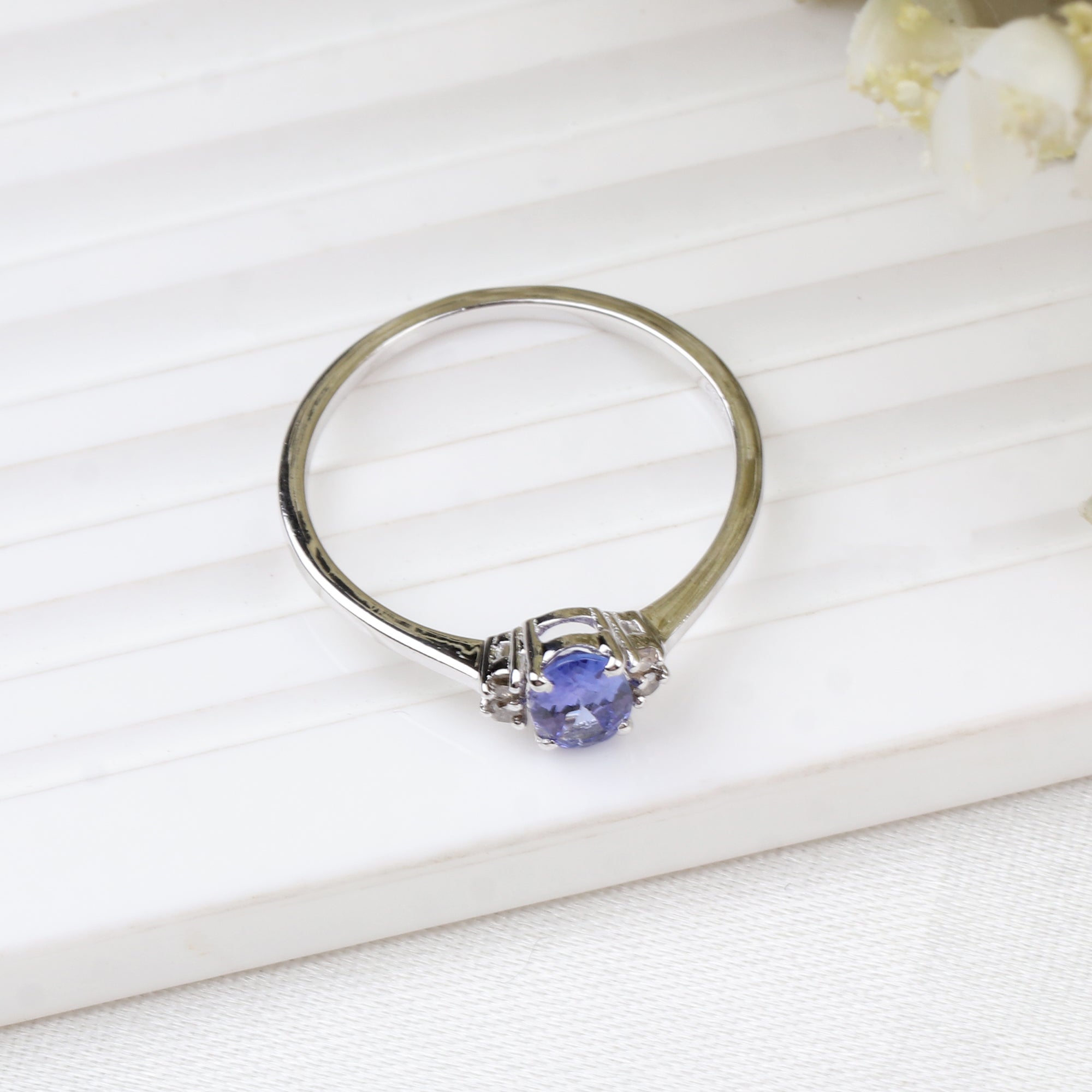 Natural Tanzanite & CZ Ring 925 Sterling Silver Gemstone Ring Handmade Jewelry