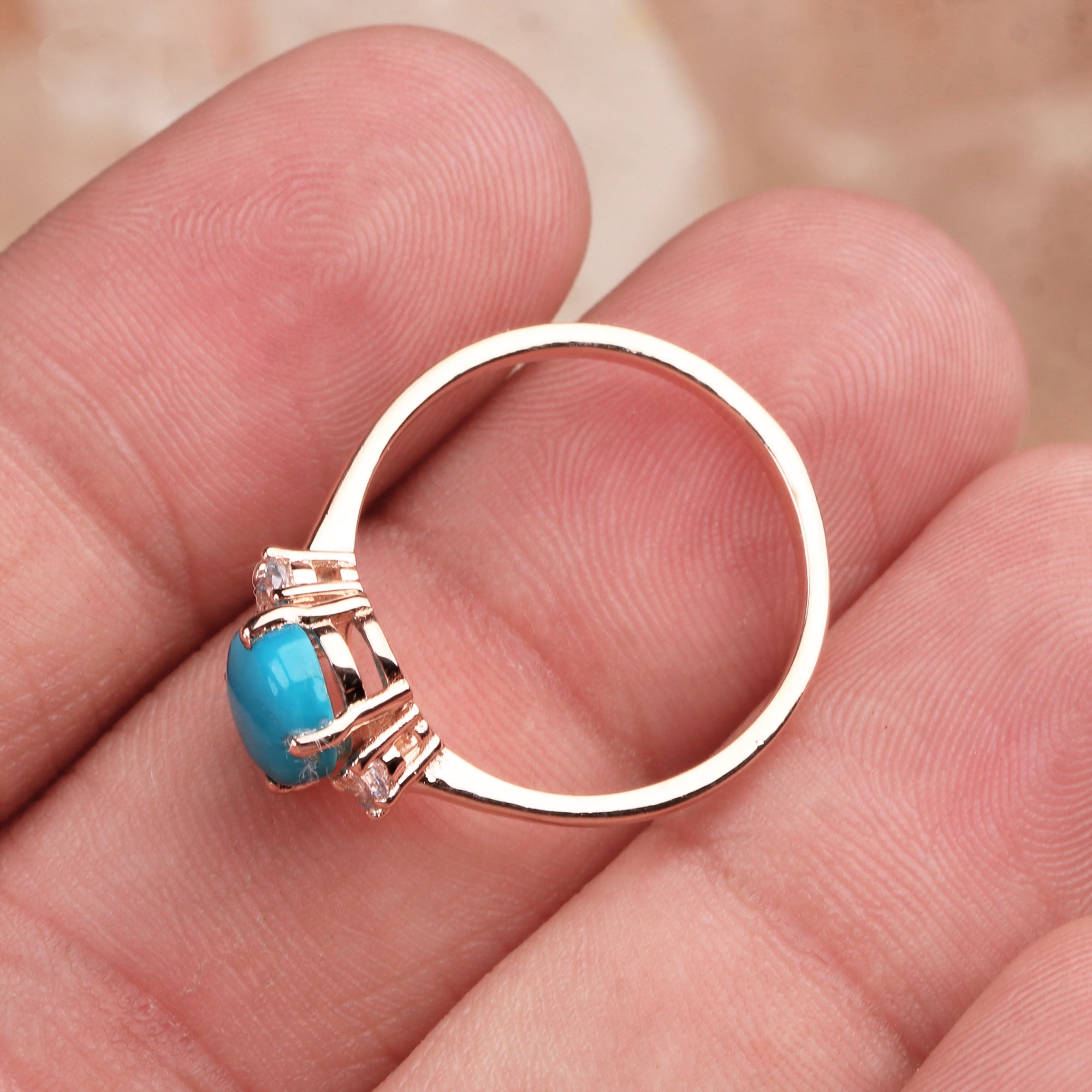 Natural Turquoise & CZ Ring 925 Sterling Silver Gemstone Ring Handmade Jewelry