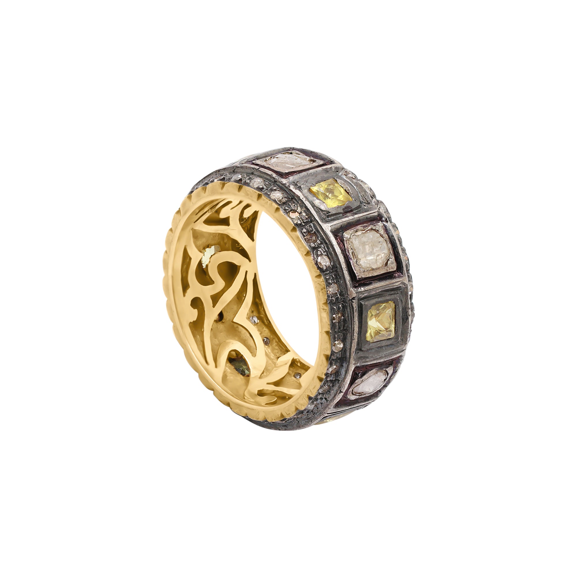 Item Type: Natural Yellow Sapphire and Polki Diamond 925 Silver Ring