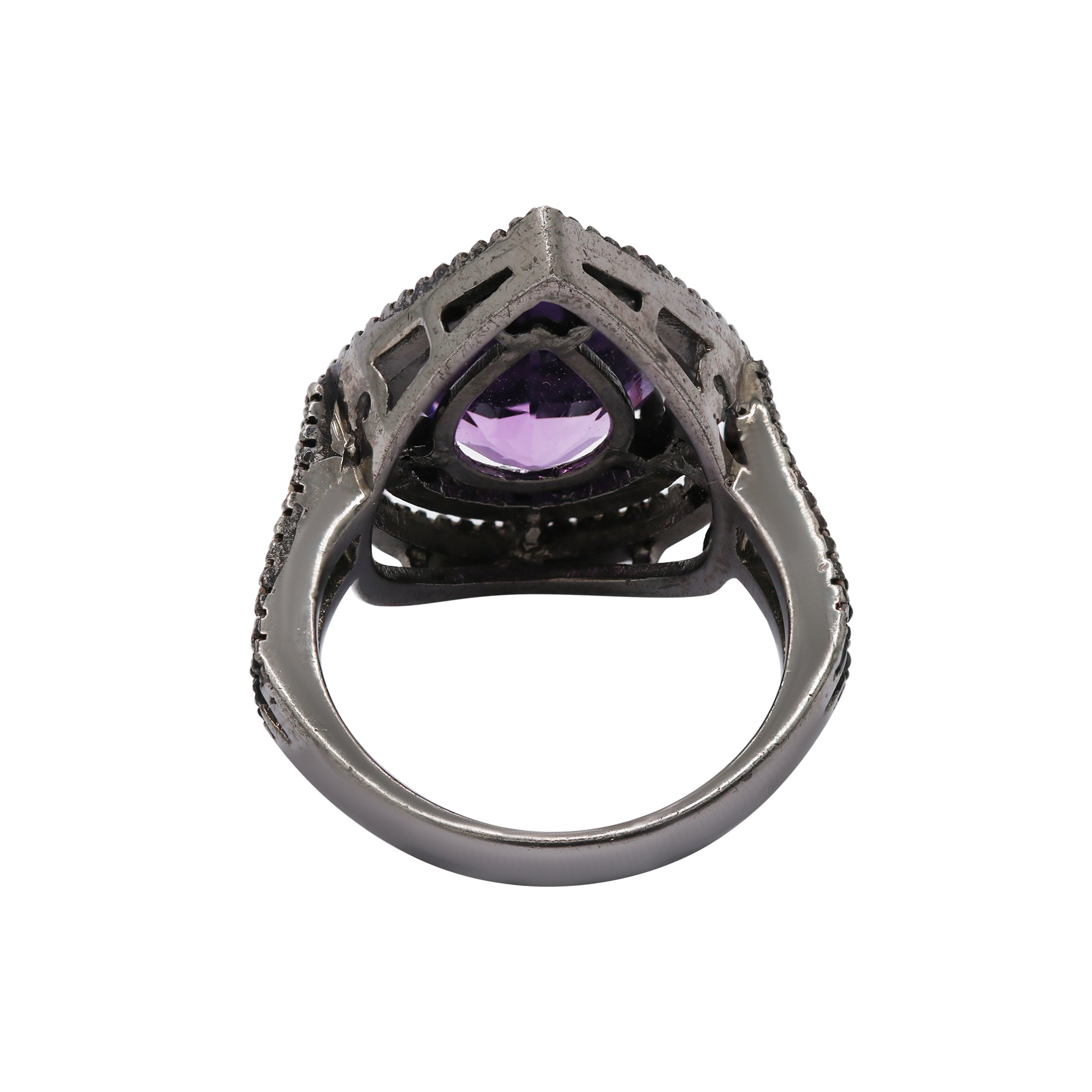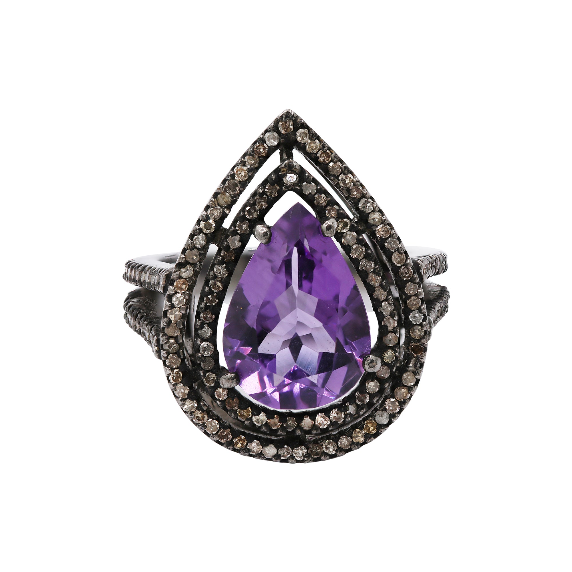 Pear Shaped Amethyst and Diamond 925 Sterling Silver Black Rhodium Ring