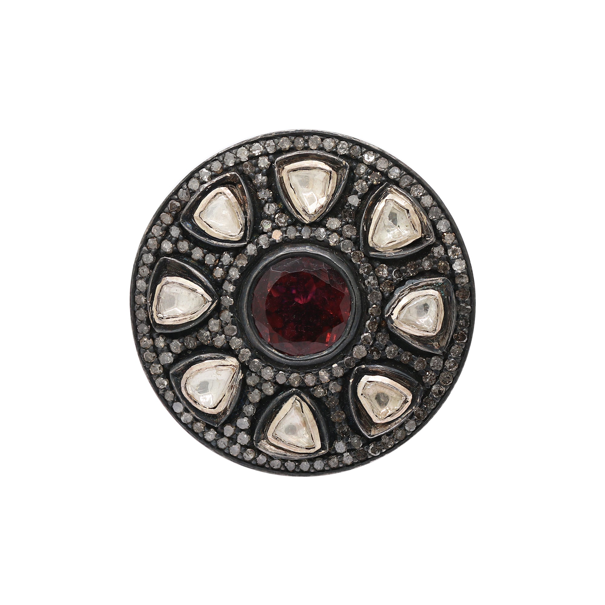 Item Type: Pink Tourmaline and Polki Diamond 925 Silver Ring