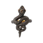 Snake Ruby and Polki Diamond 925 Sterling Silver Black Rhodium Gold Plated Ring