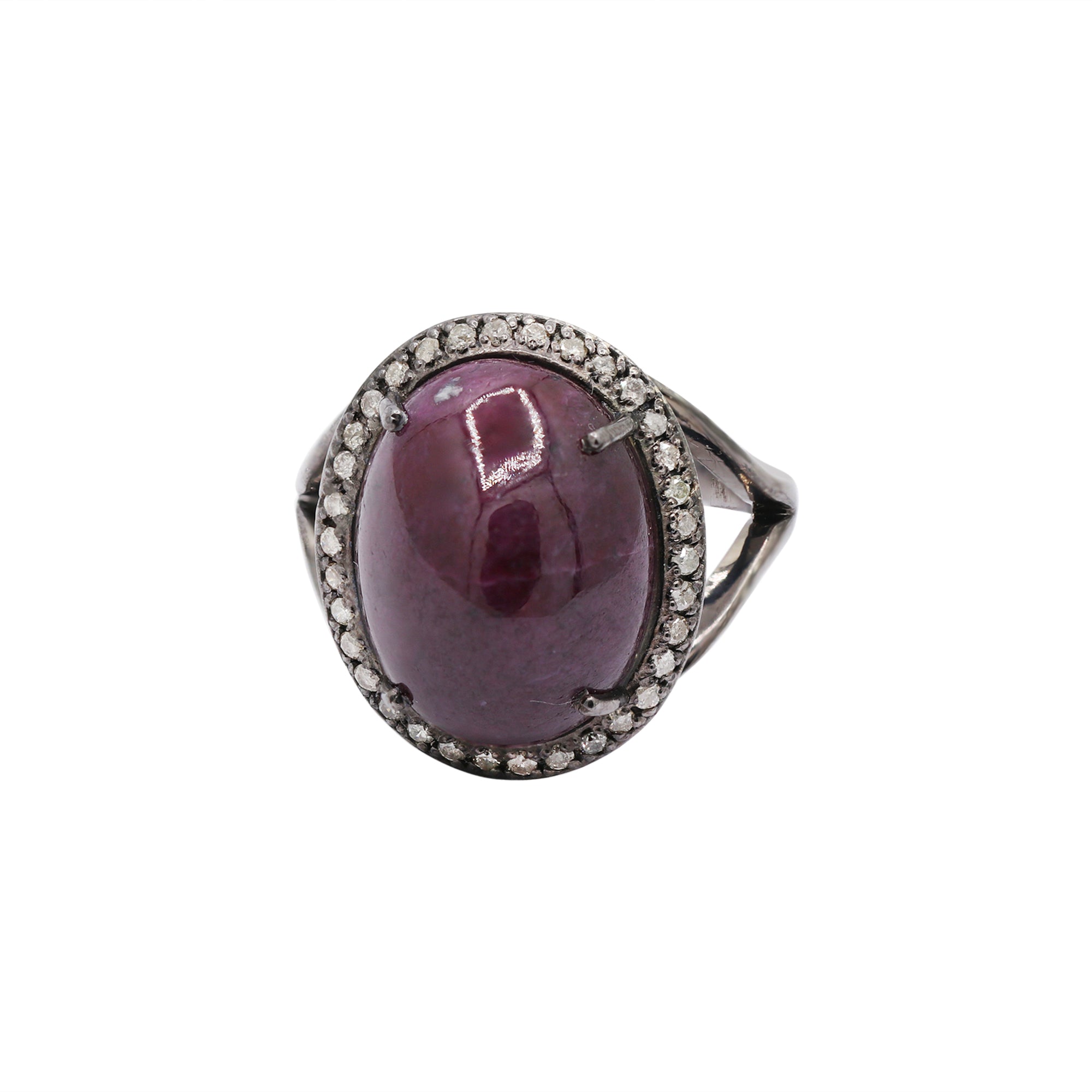 Star Ruby and Diamond 925 Silver Black Rhodium Plated Designer Ring