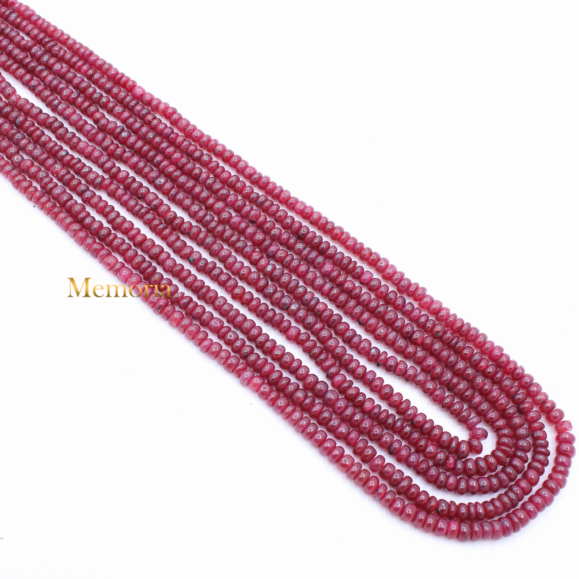 Buy 5 Line Round Smooth Shaped Natural Ruby Spiritual Healing Gemstone Beads Strand Necklace