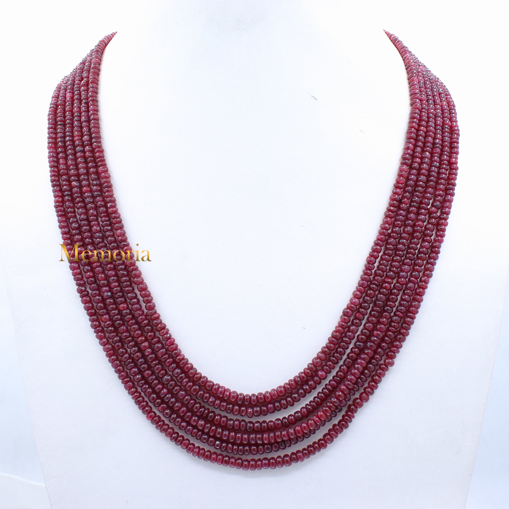 Buy 6 Line Round Smooth Shaped Natural Ruby Spiritual Healing Gemstone Beads Strand Necklace