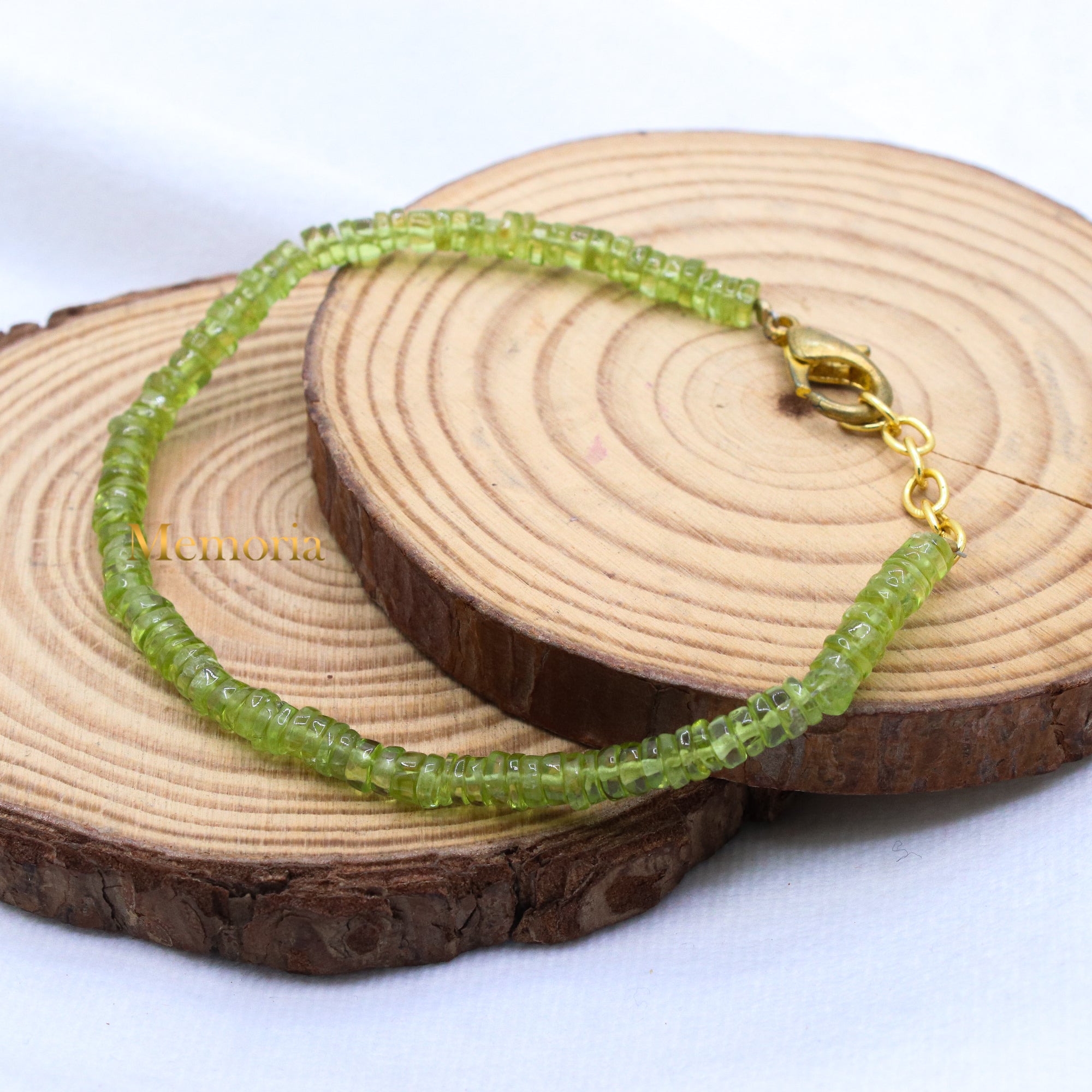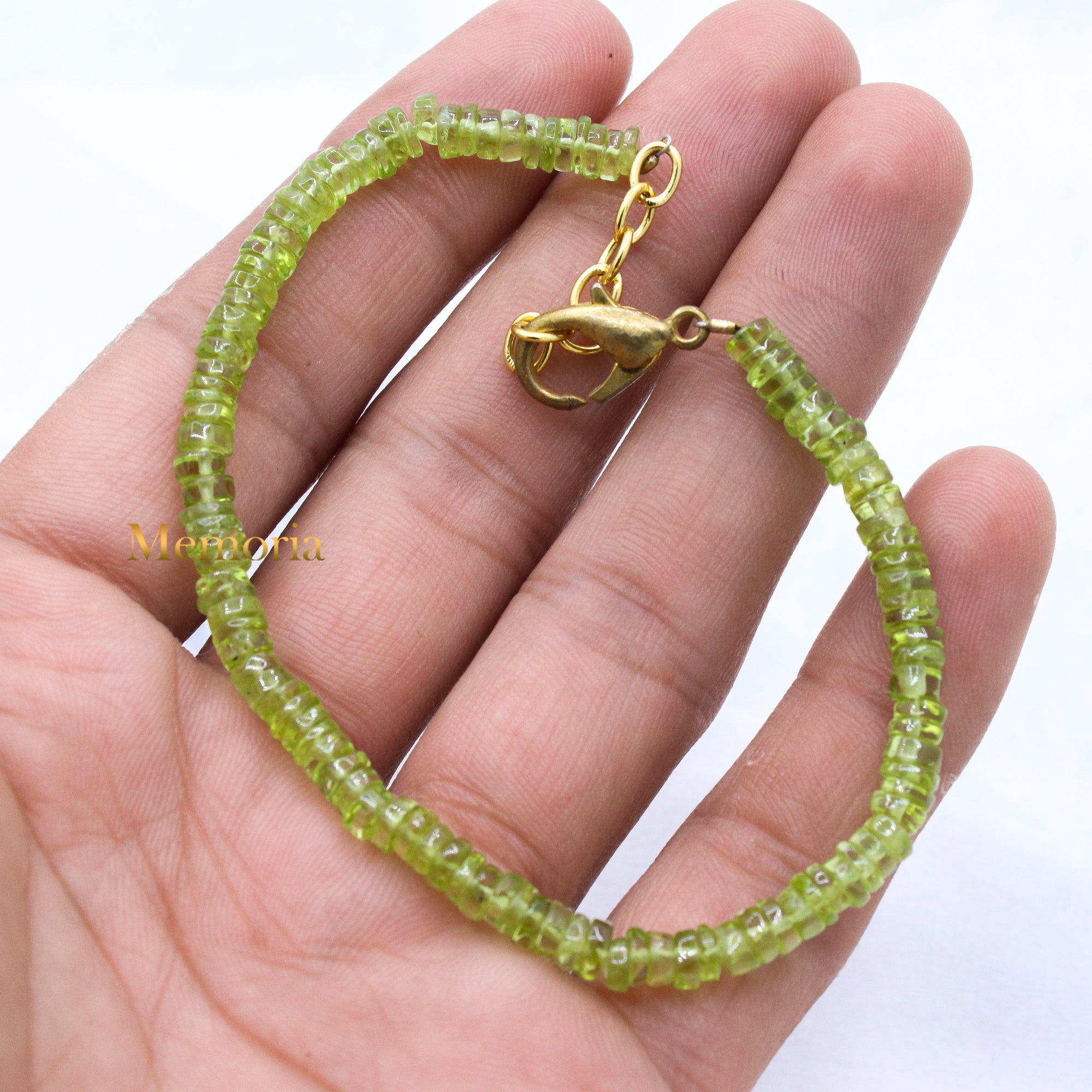 Buy Certified Handmade Natural Tyre Cut Chakra Healing Peridot Gemstone Beaded Bracelet