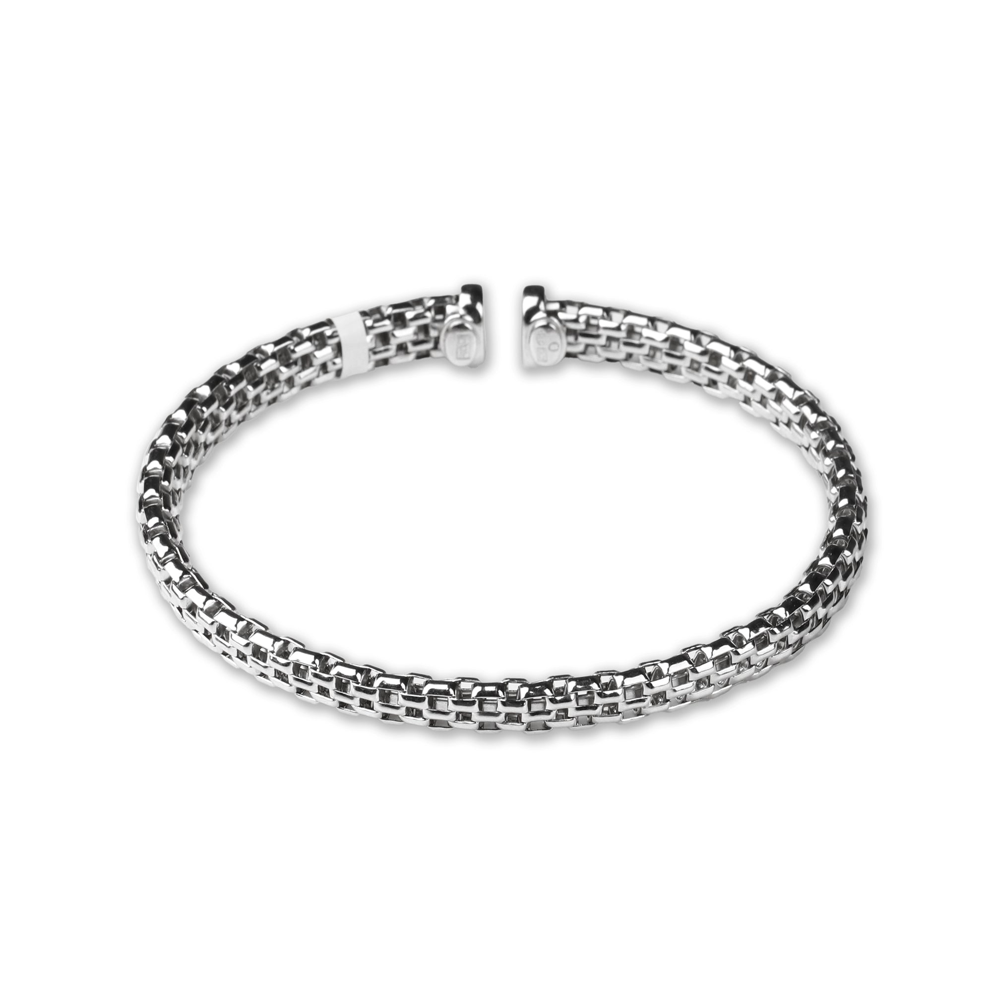 This sterling silver bracelet features a bold box weave texture that brings a sleek, modern edge to your wrist. Comfortable and unisex, it’s ideal for stacking or wearing alone. A refined everyday accessory that effortlessly elevates any outfit.