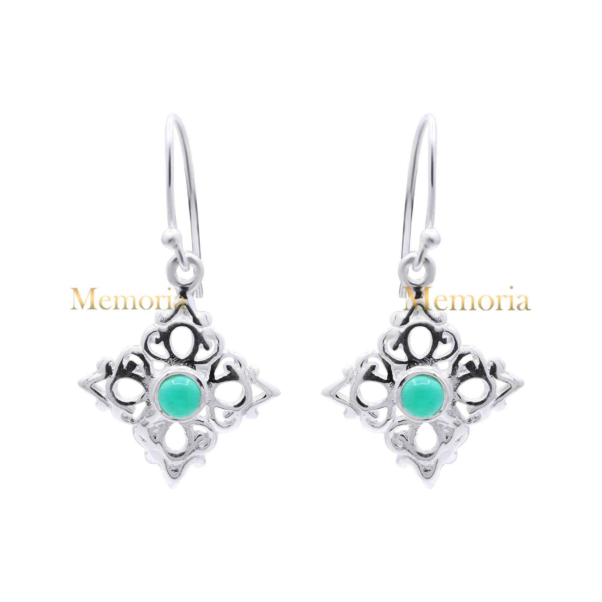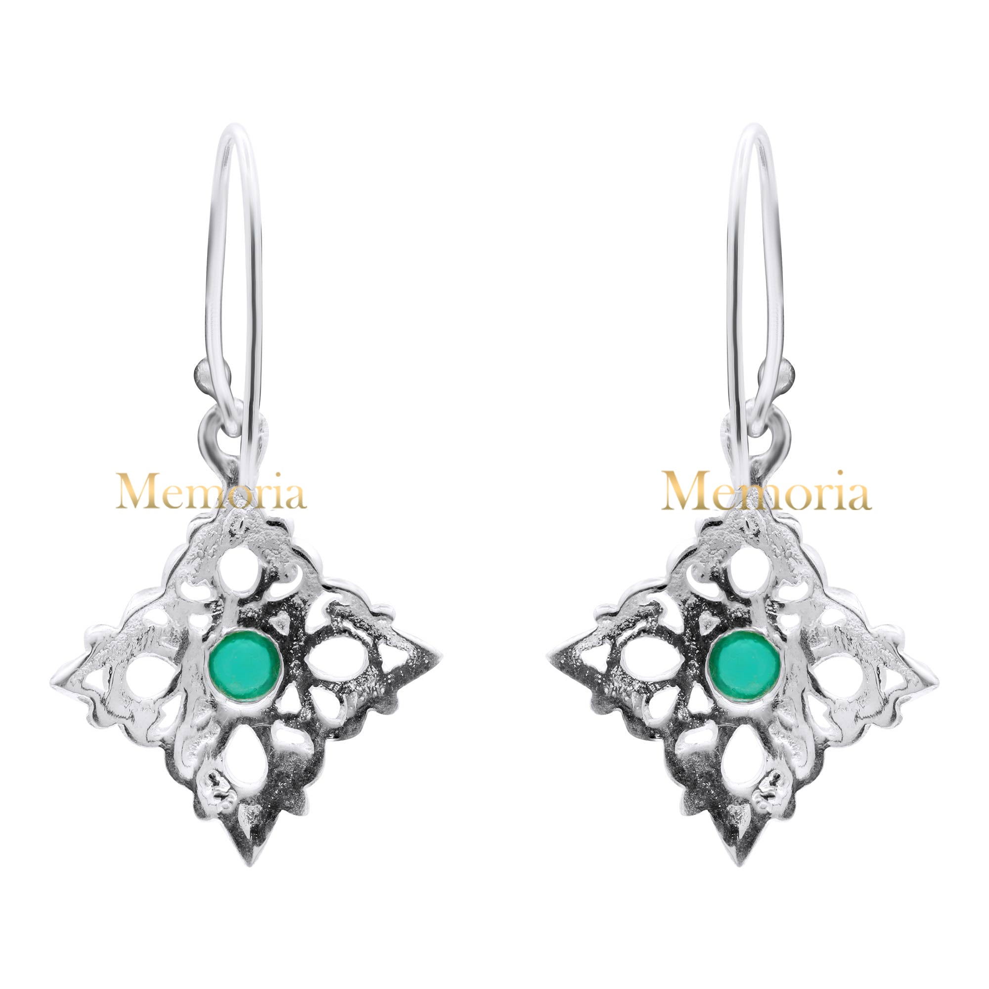 Natural Drop Dangle Green Onyx Gemstone 925 Sterling Silver Earring