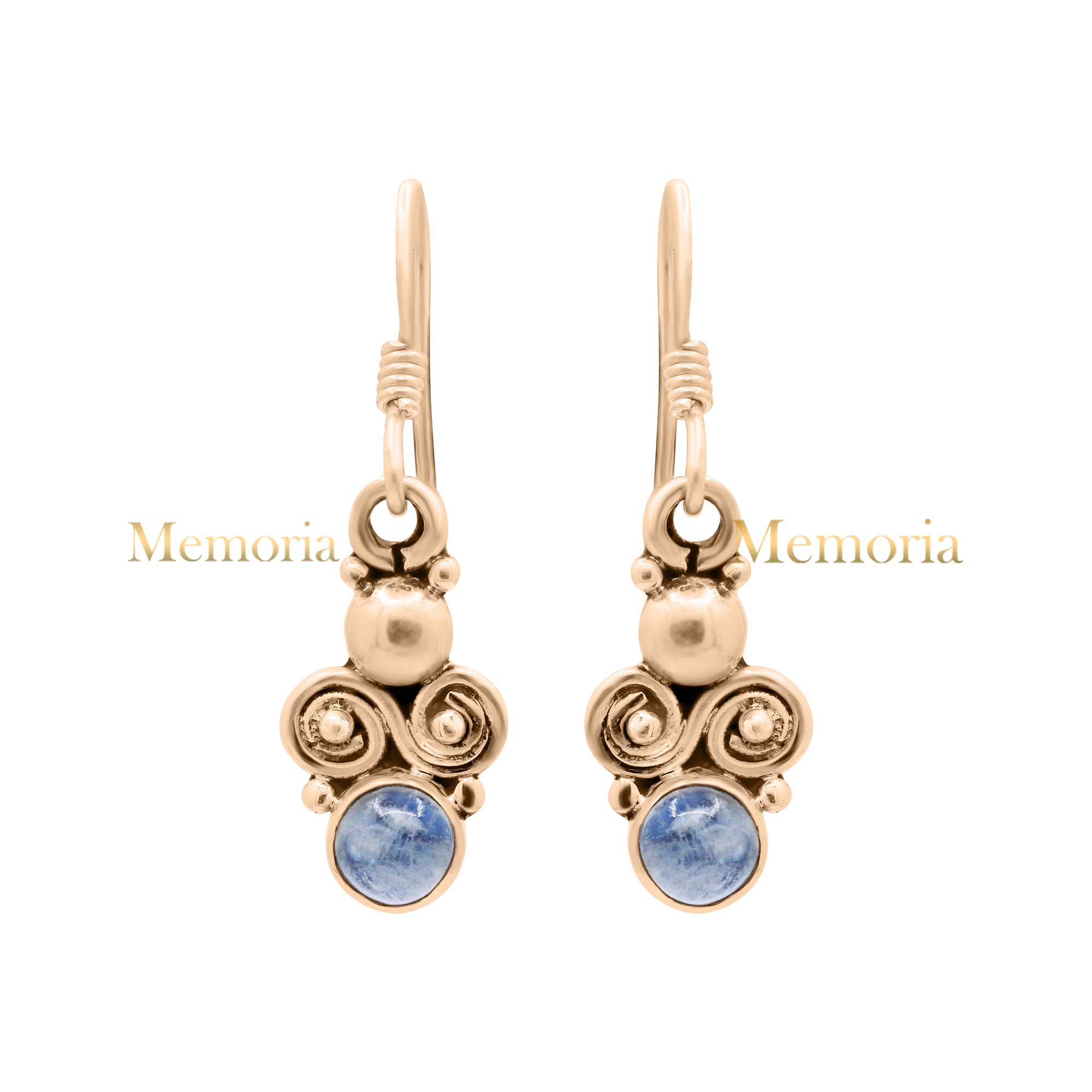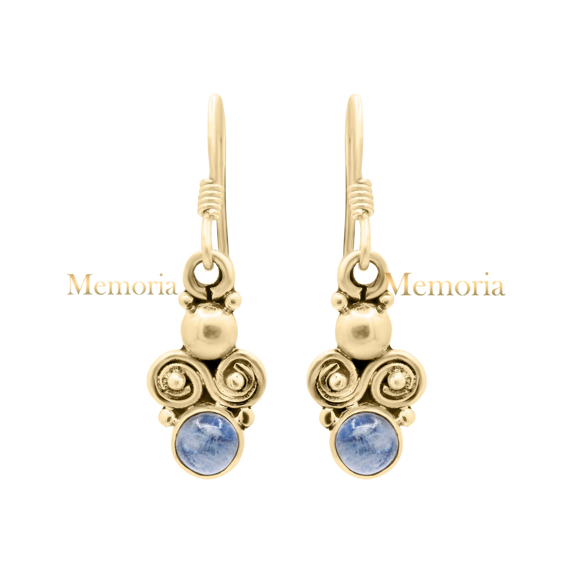 925 Sterling Silver Gold Plated White Moonstone Gemstone Dangle Drop Earring