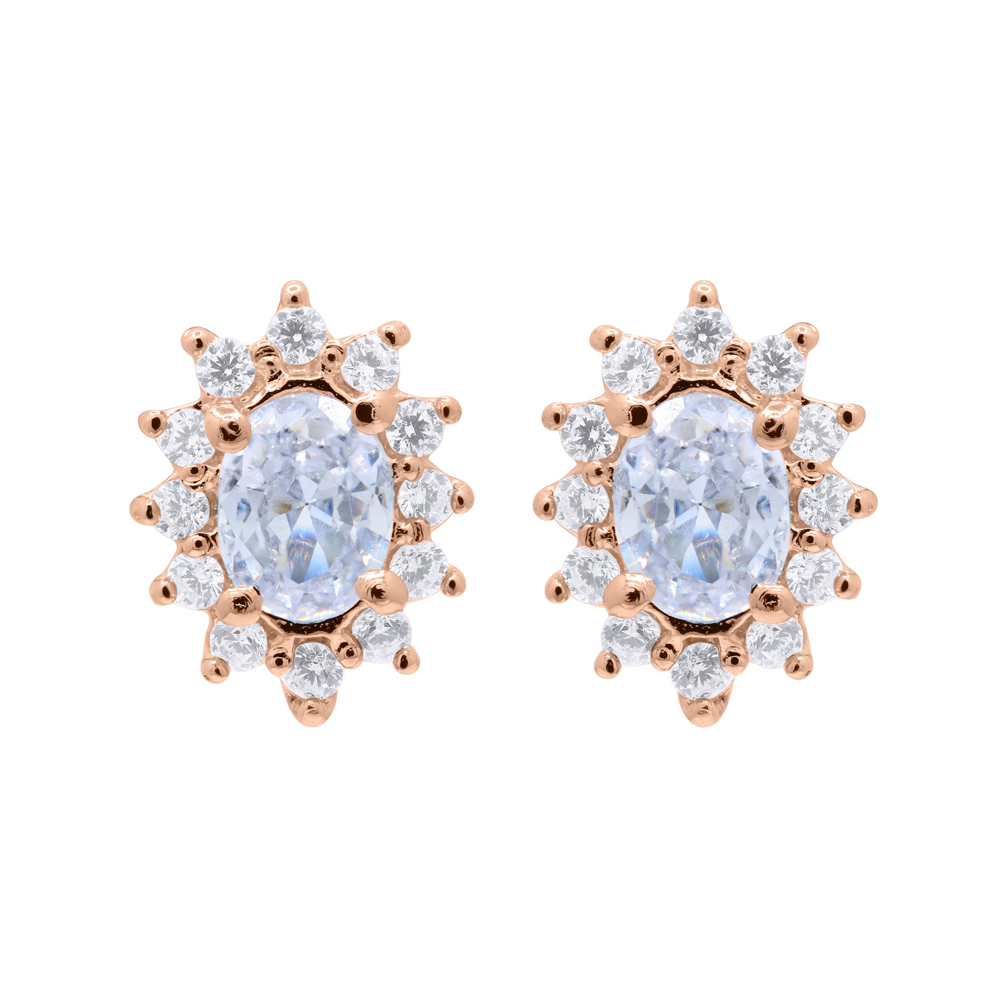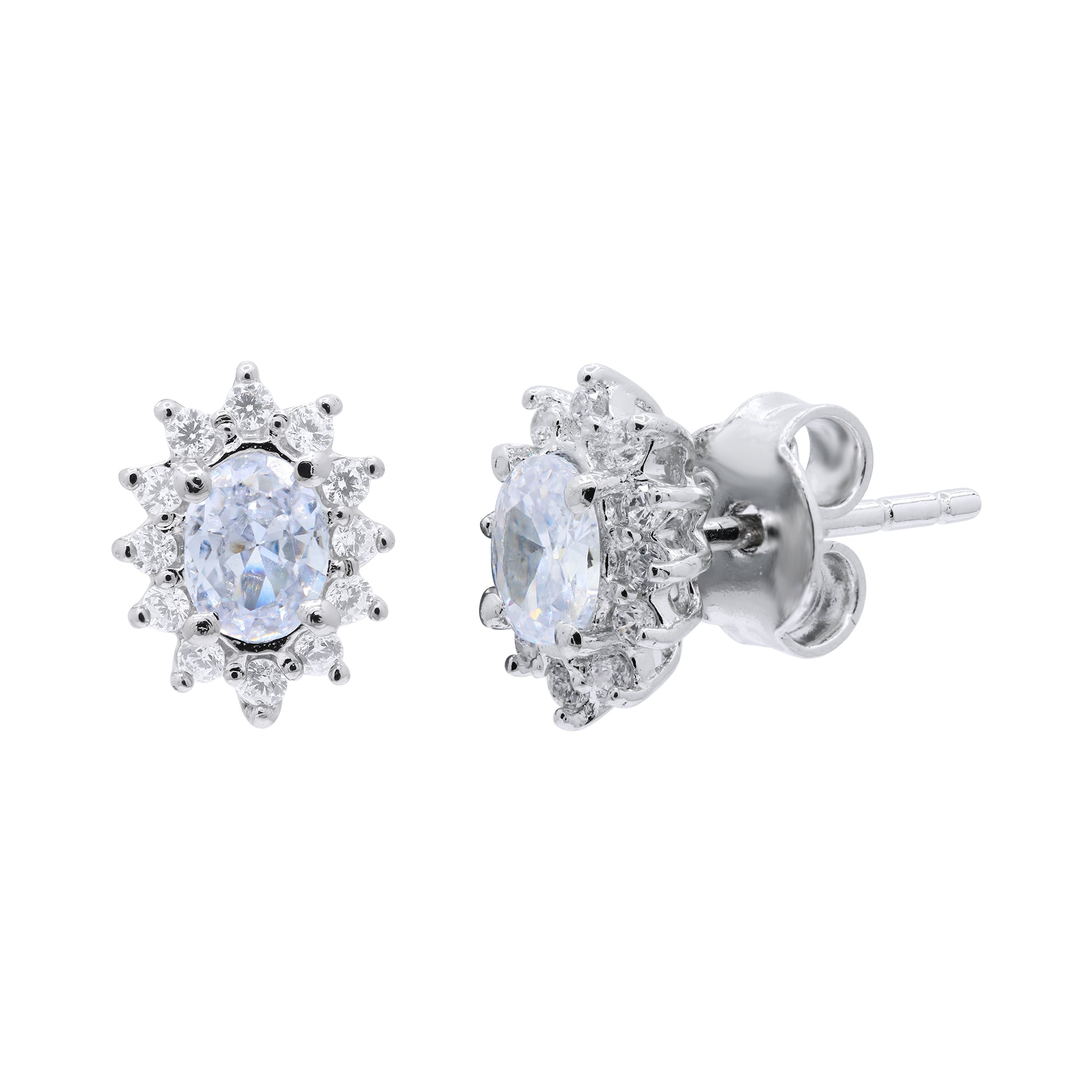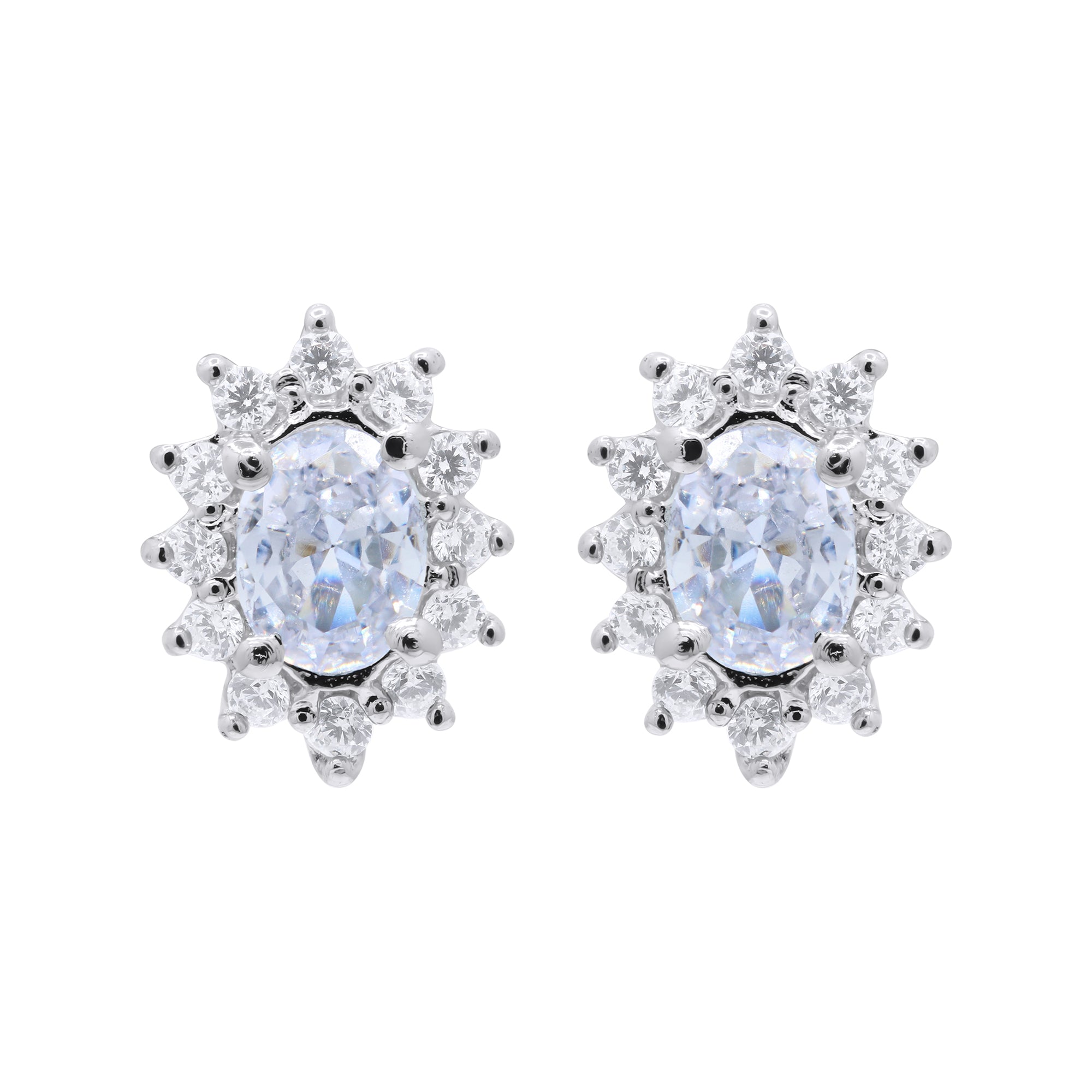 Elegant Oval Shaped Cubic Zircon 925 Sterling Silver Stud Earring