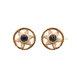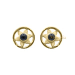 Flower Design Black Onyx Gemstone 925 Sterling Silver Gold Plated Stud Earring