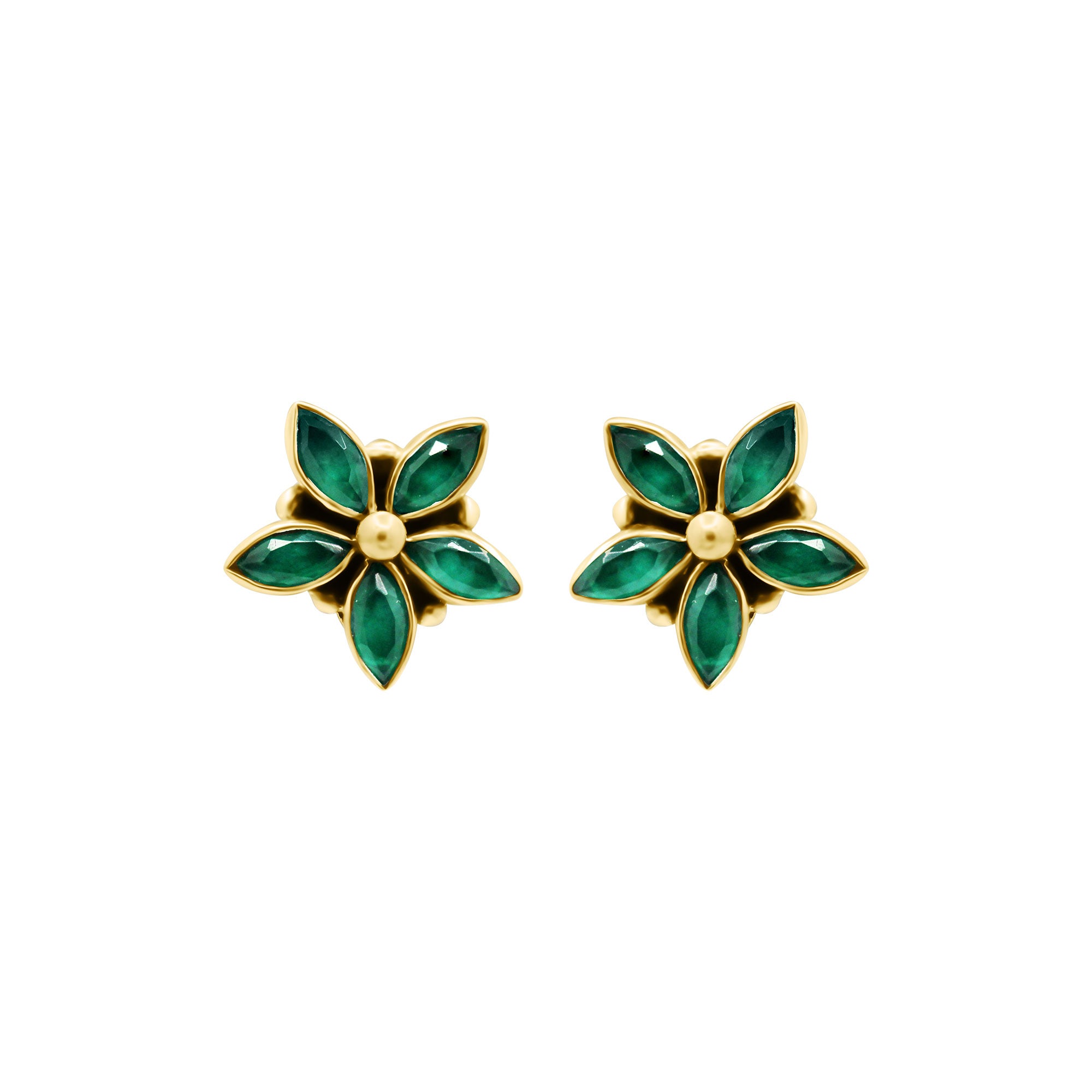 Natural Green Onyx Gemstone 925 Sterling Silver Gold Plated Earring