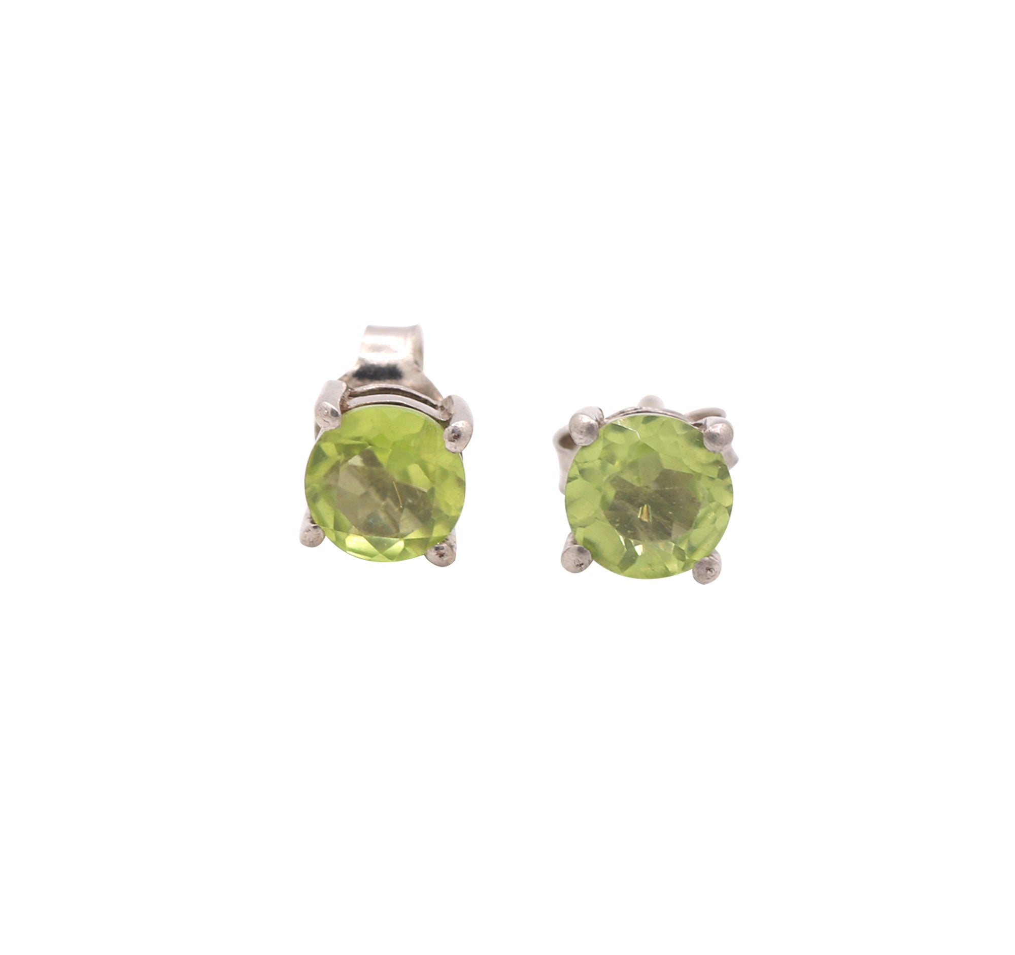 925 Sterling Silver Natural Peridot Round Cut Gemstone Stud Earring