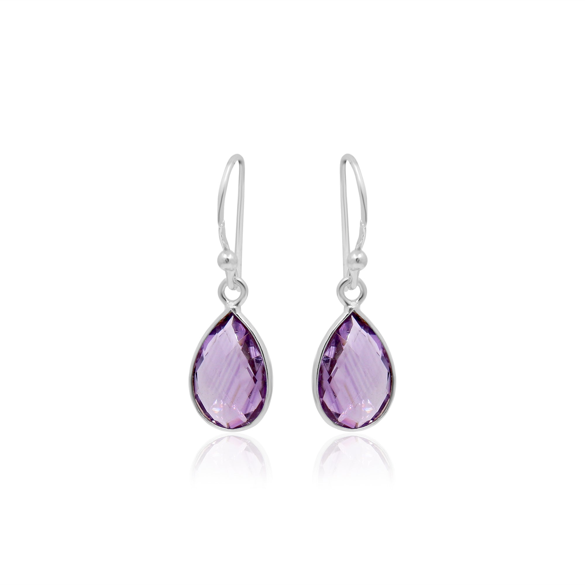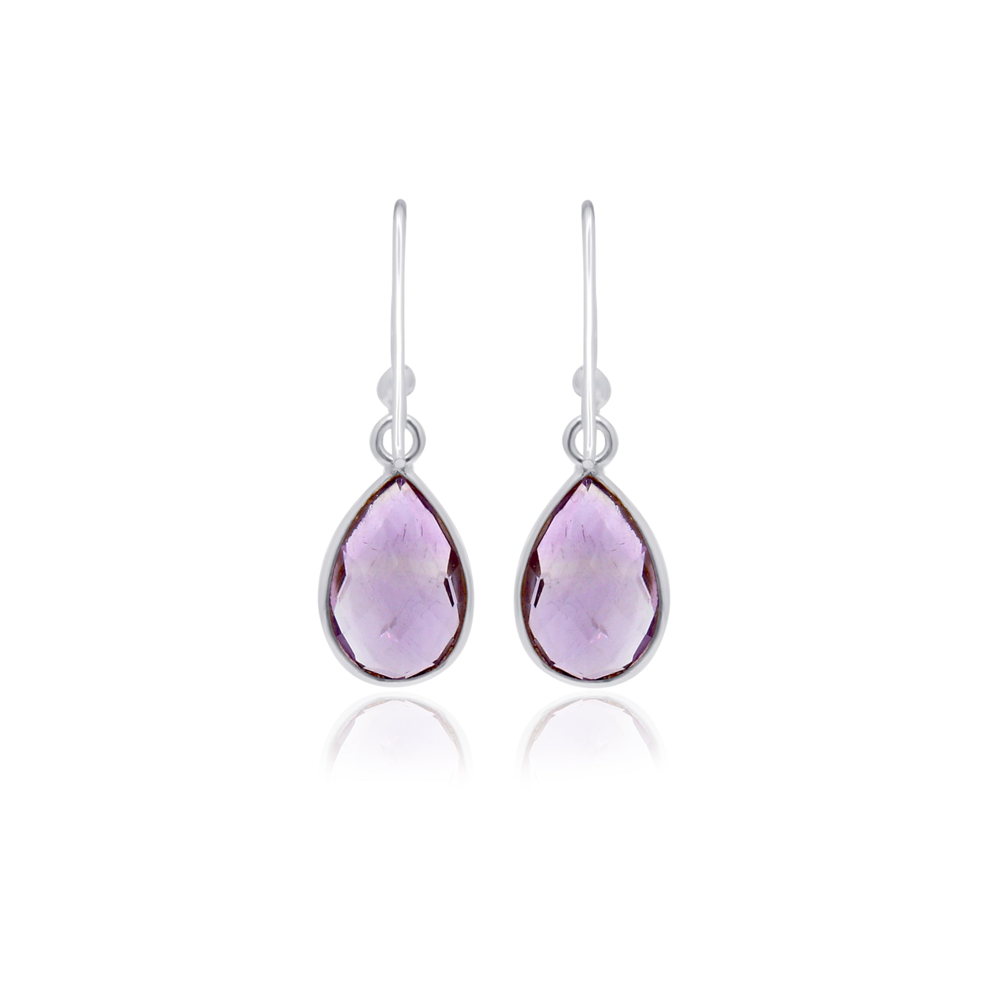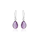 925 Sterling Silver Natural Pear Cut Amethyst Gemstone Drop Earring