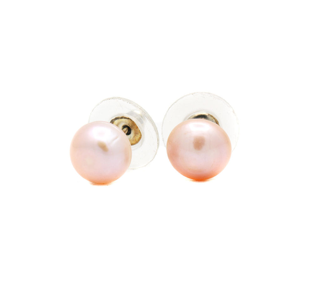 Round Pearl Gemstone 925 Sterling Silver Stud Earring