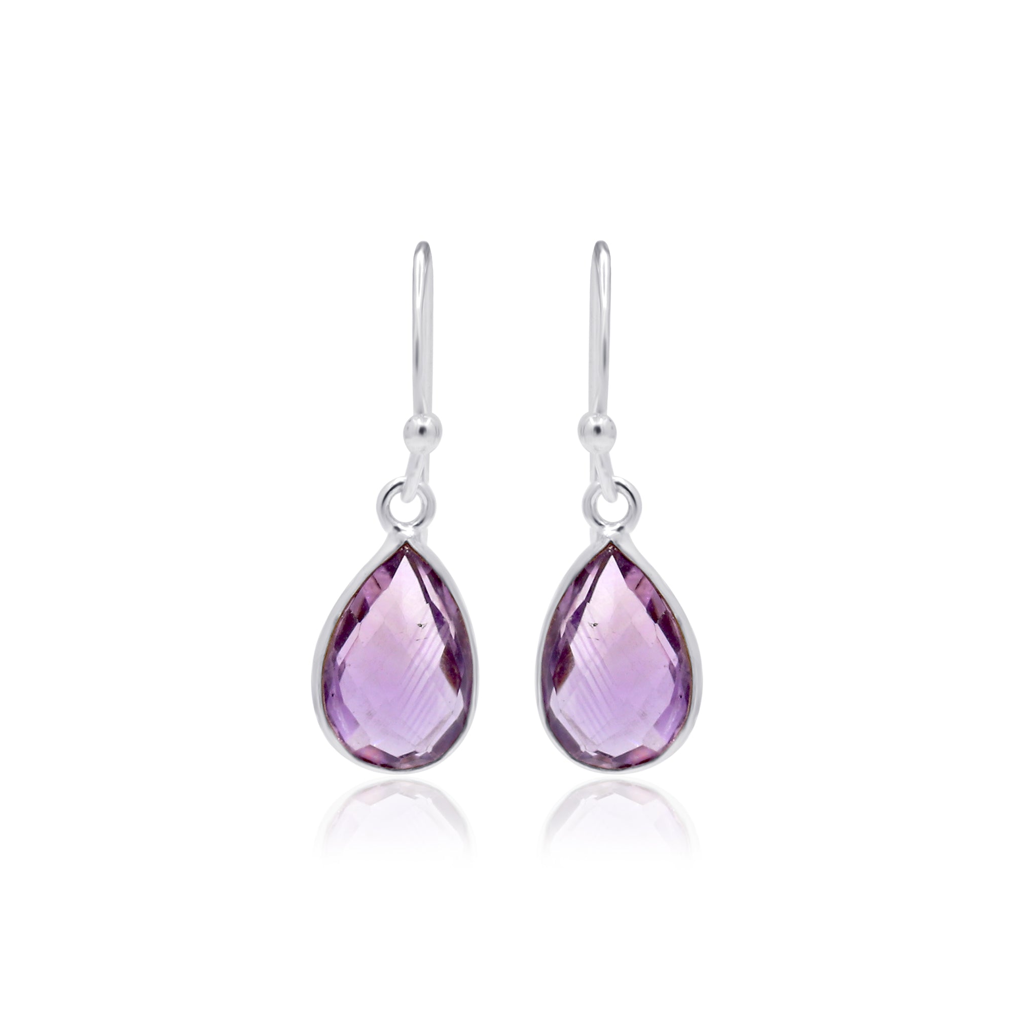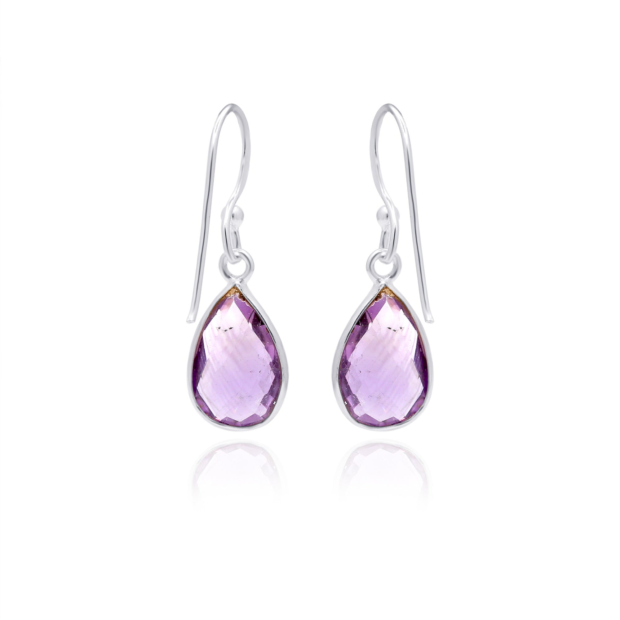 Pear Shaped 925 Sterling Silver Natural Amethyst Gemstone Earring
