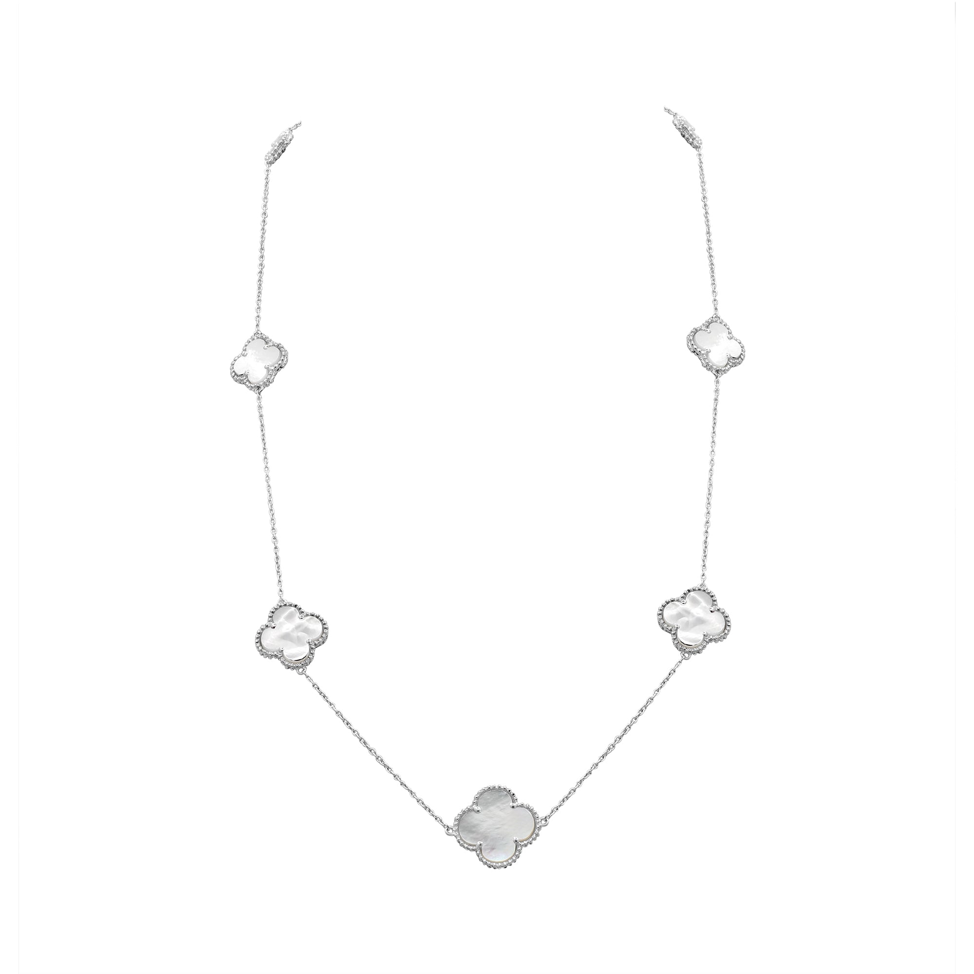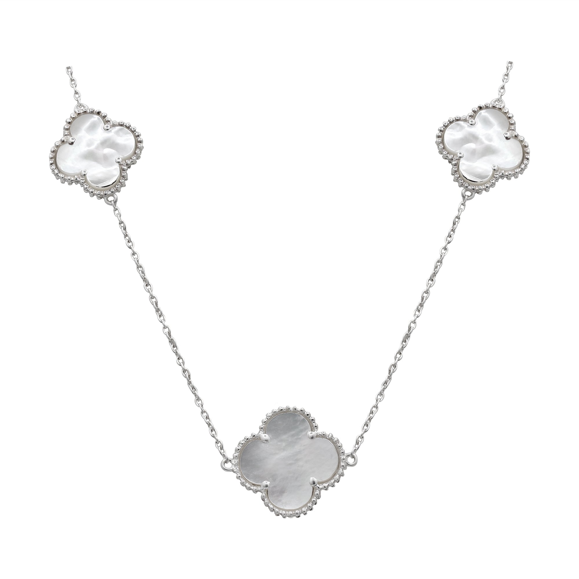 Item Type: 925 Silver Clover Shape Mother of Pearl Gemstone Necklace