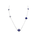 925 Sterling Silver Clover Natural Lapis Lazuli Necklace