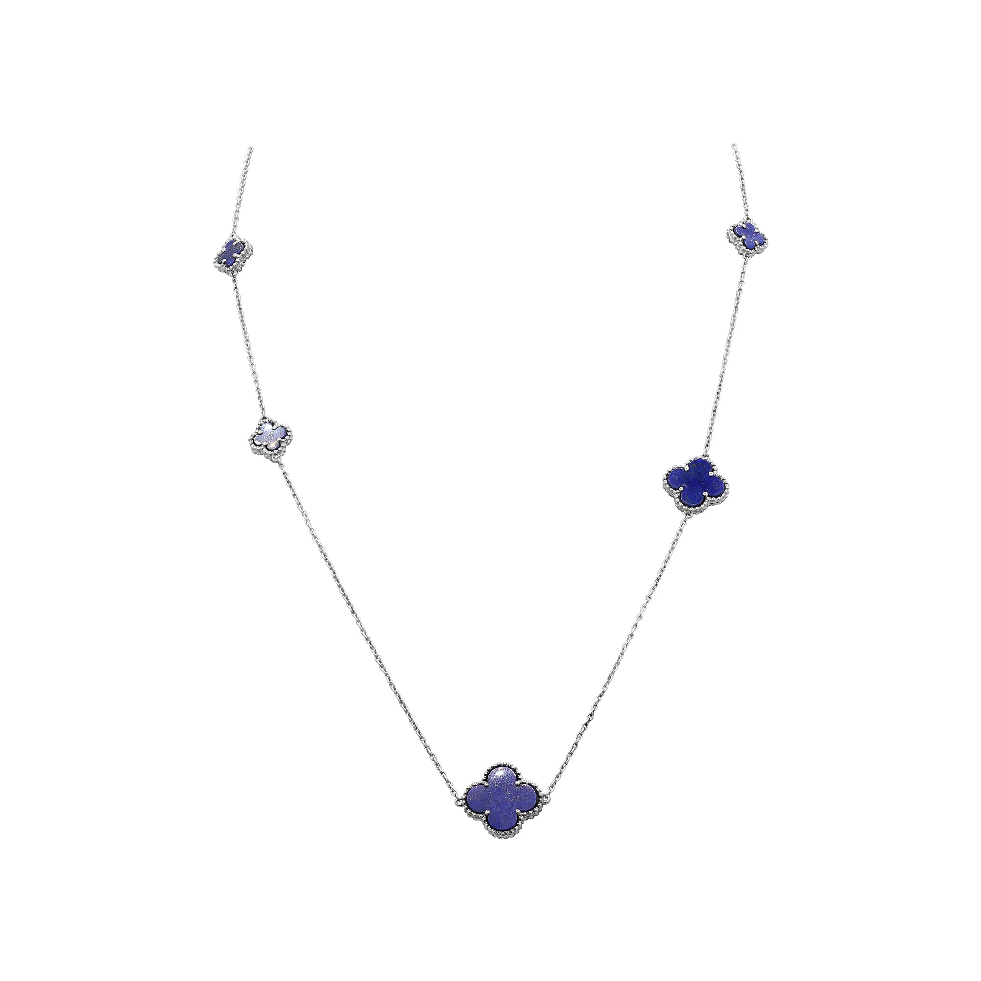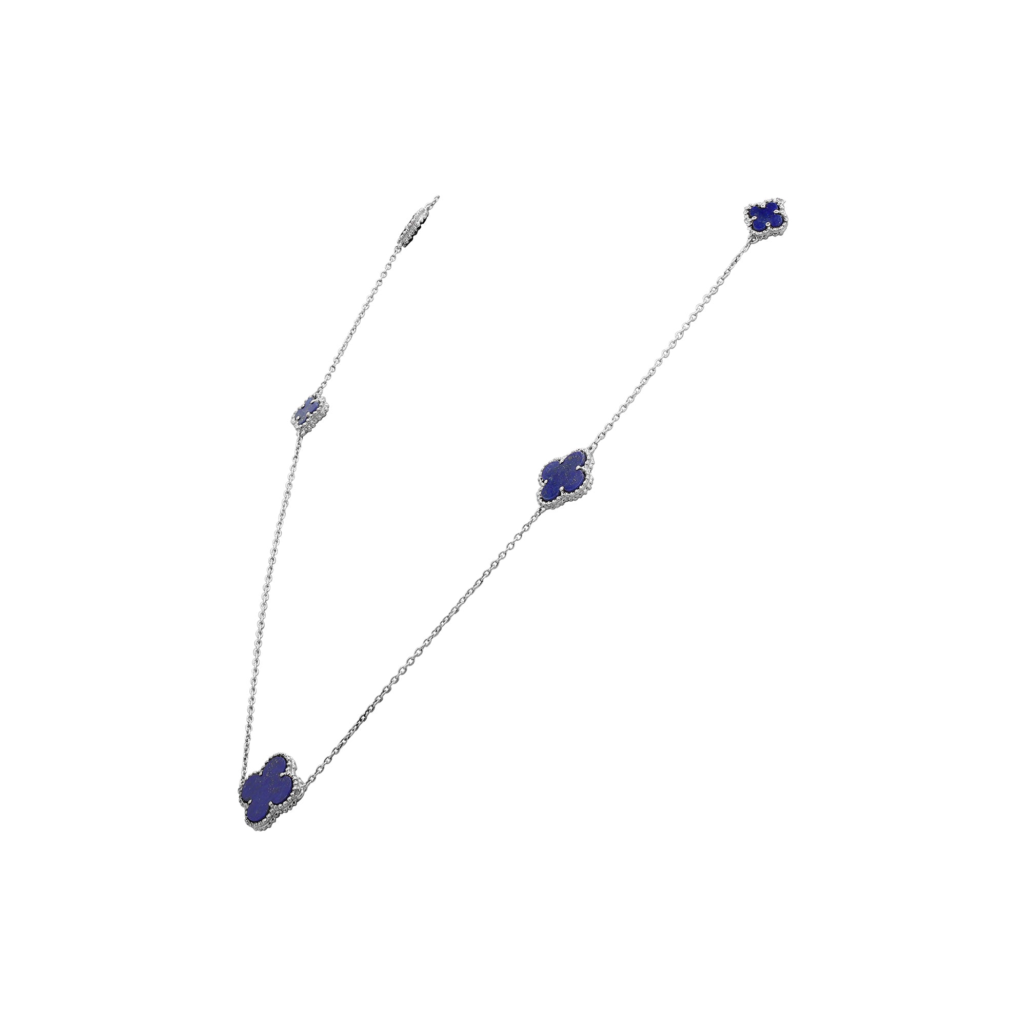 Item Type: 925 Sterling Silver Clover Natural Lapis Lazuli Necklace