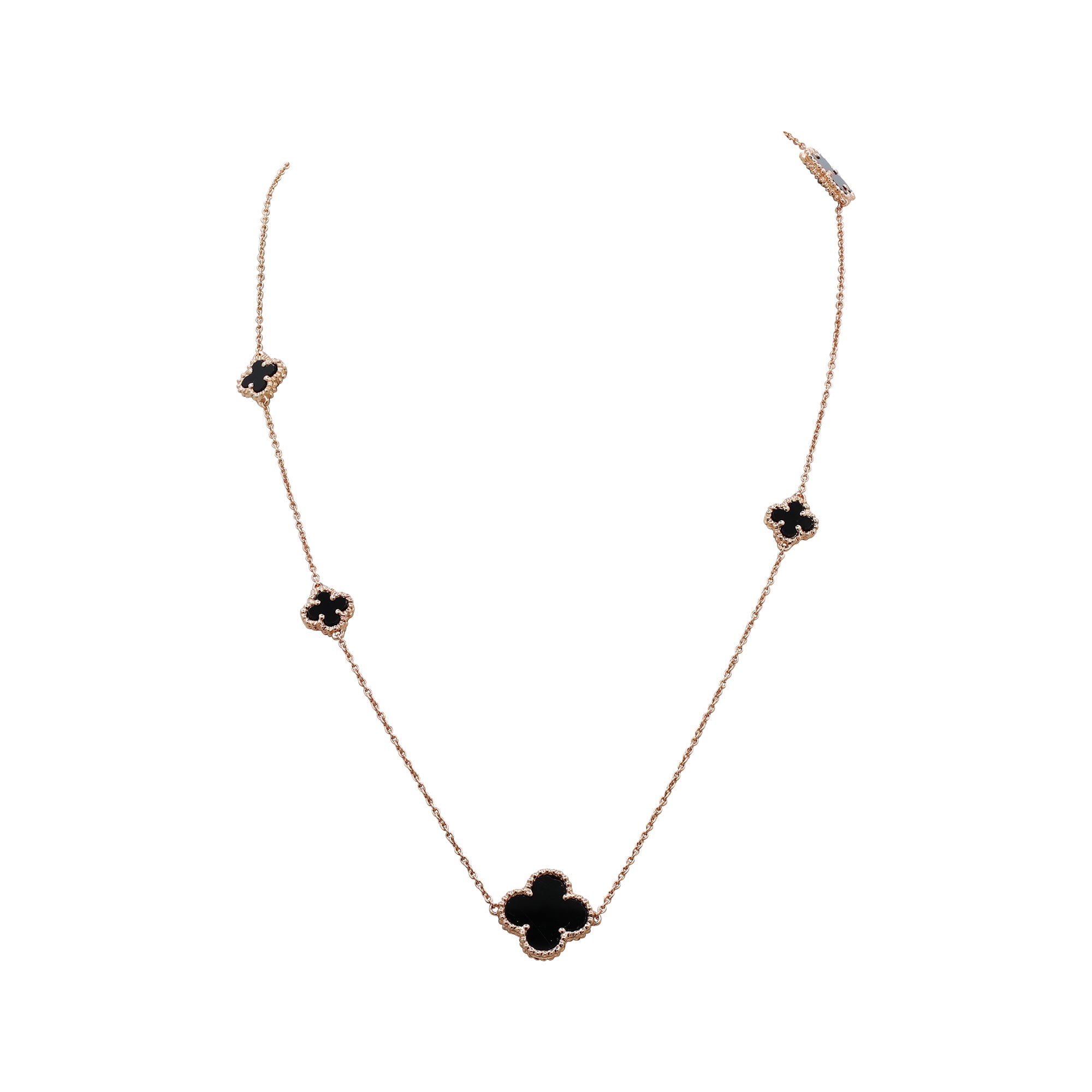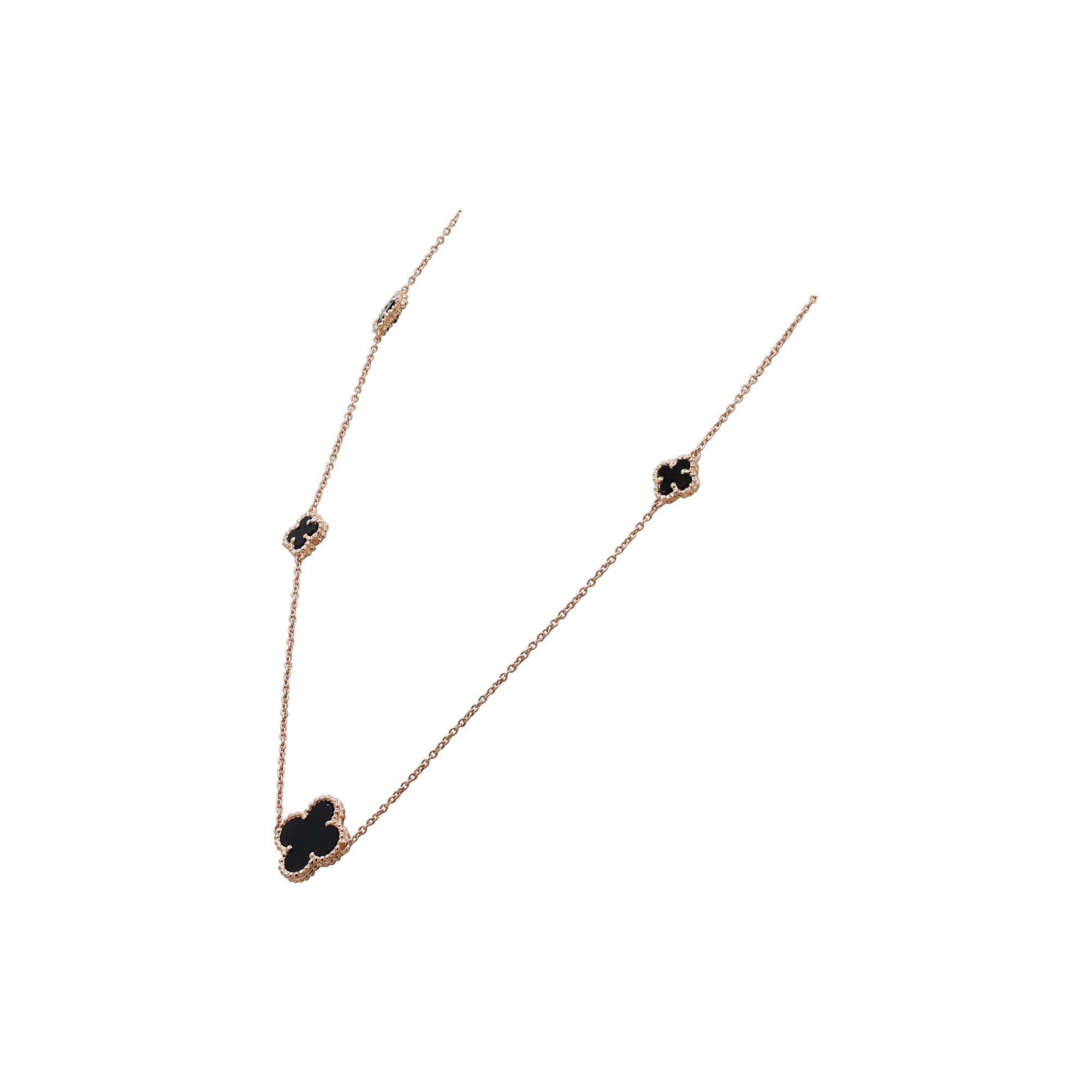 Item Type: Clover Shape Rose Gold Plated Black Onyx Necklace