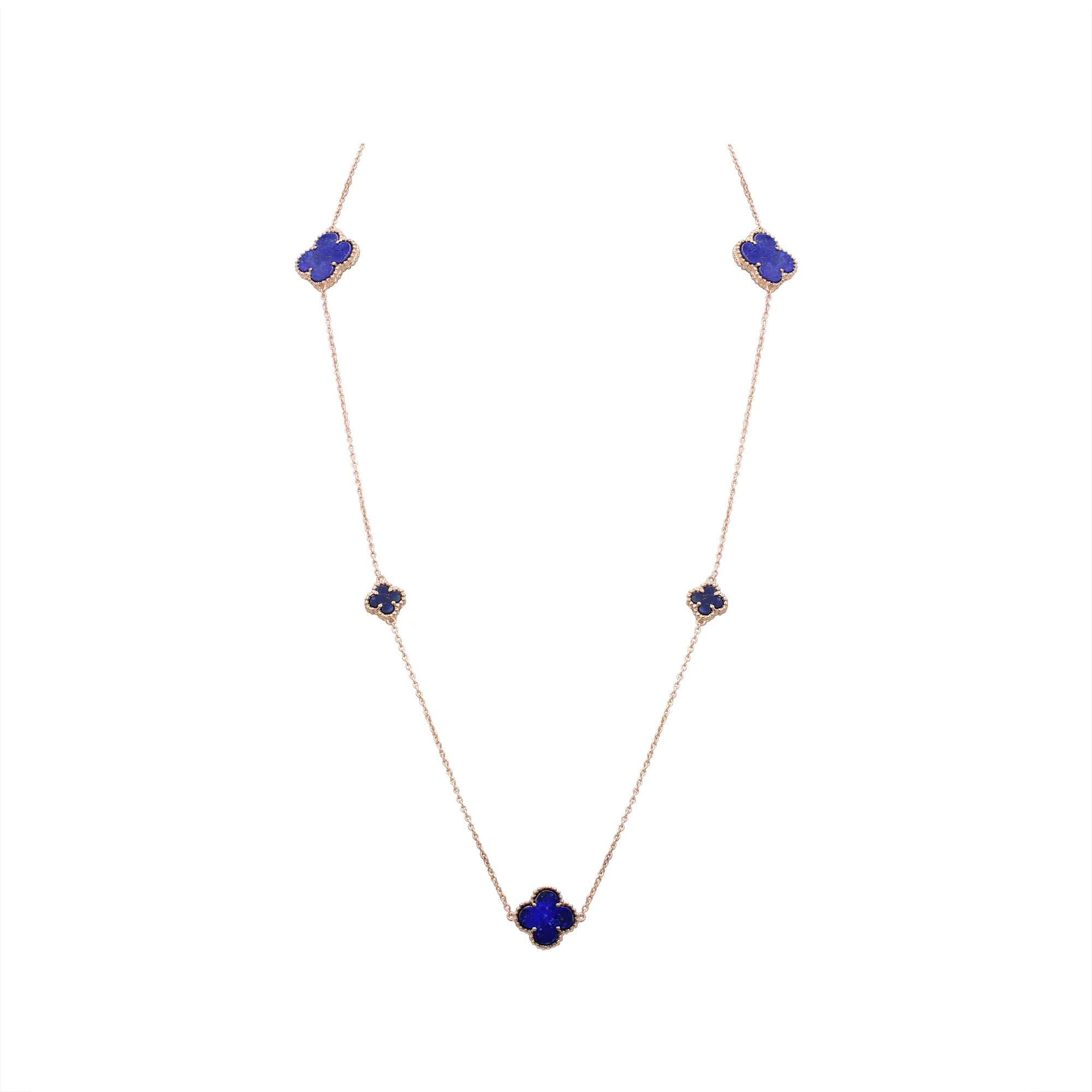 Item Type: Natural Lapis Lazuli Rose Gold Plated Silver Clover Necklace