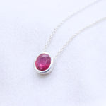 Natural Ruby Necklace 925 Sterling Silver Minimal Necklace Oval Cut Gemstone Pendant