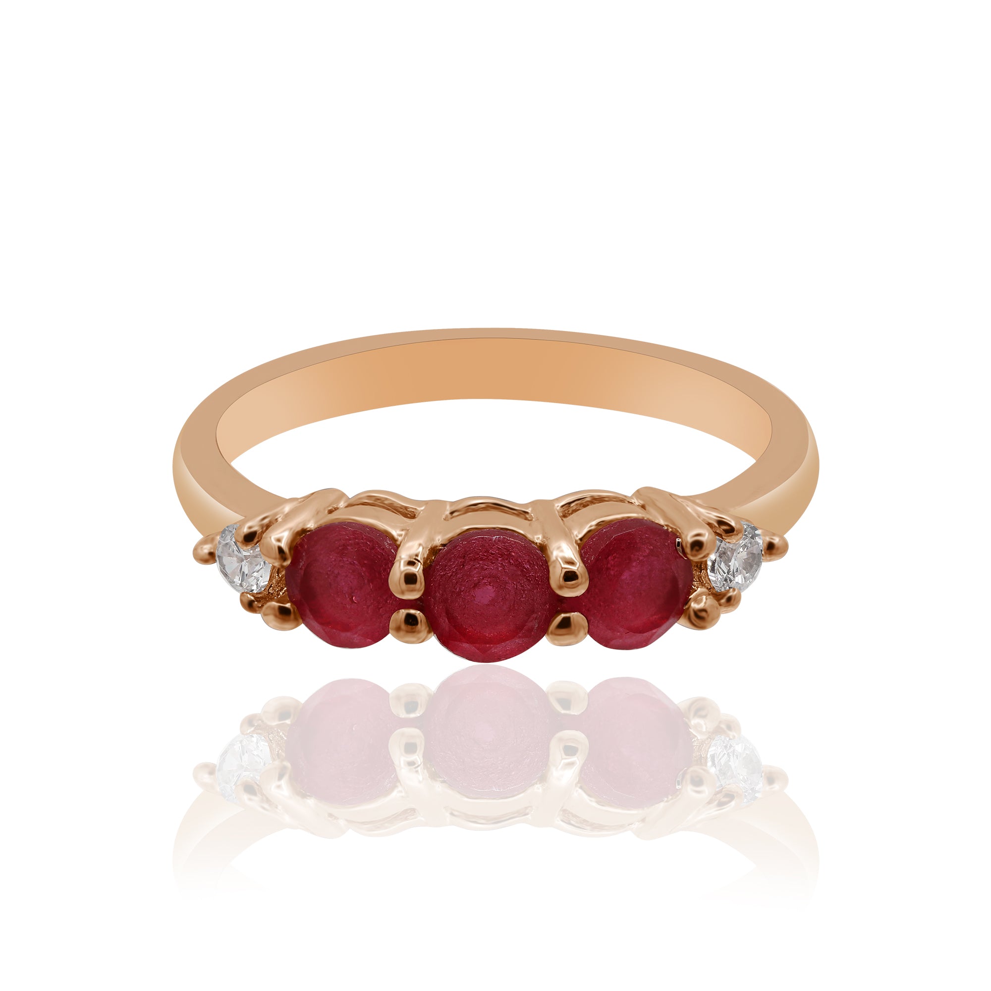 Rose Gold Plated Round Ruby Ring, Earring, Pendant Set
