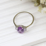 Natural Amethyst & CZ Ring 925 Sterling Silver Gemstone Ring Handmade Jewelry
