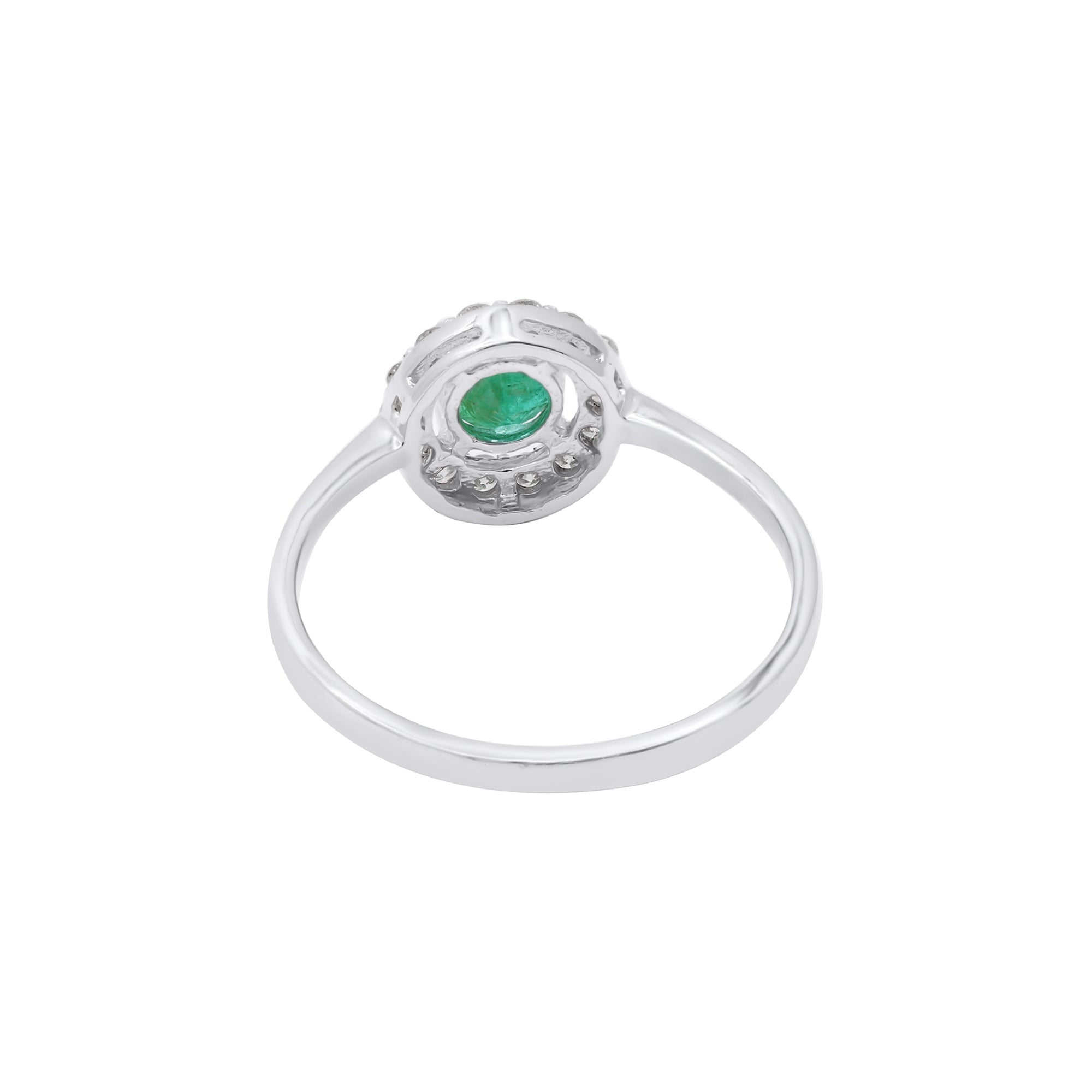 Beautiful Natural Round Cut Emerald Gemstone and Diamond 14k White Gold Ring For Women
