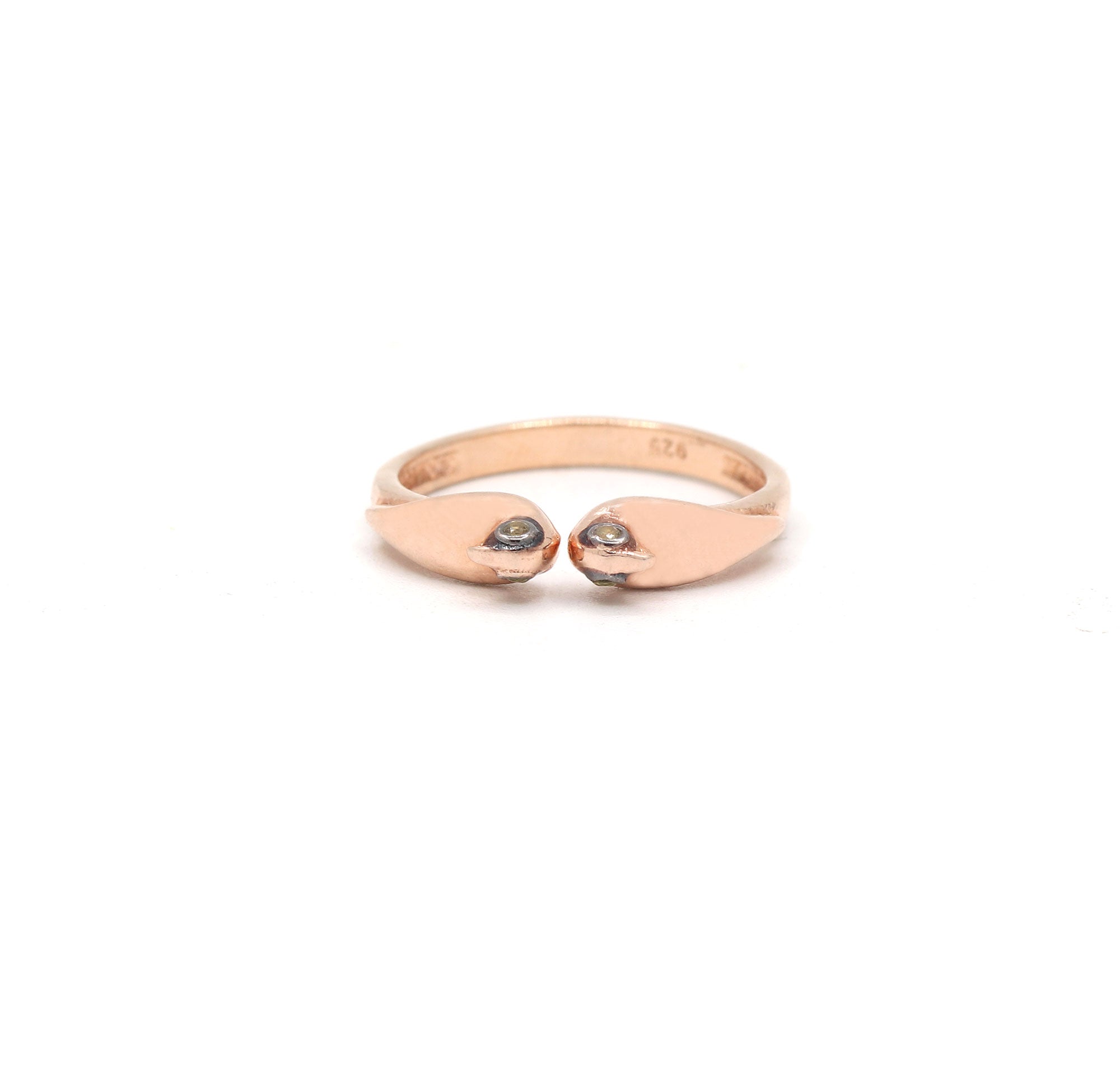Pigeon Shape Sapphire Rose Gold Plated Silver Ring