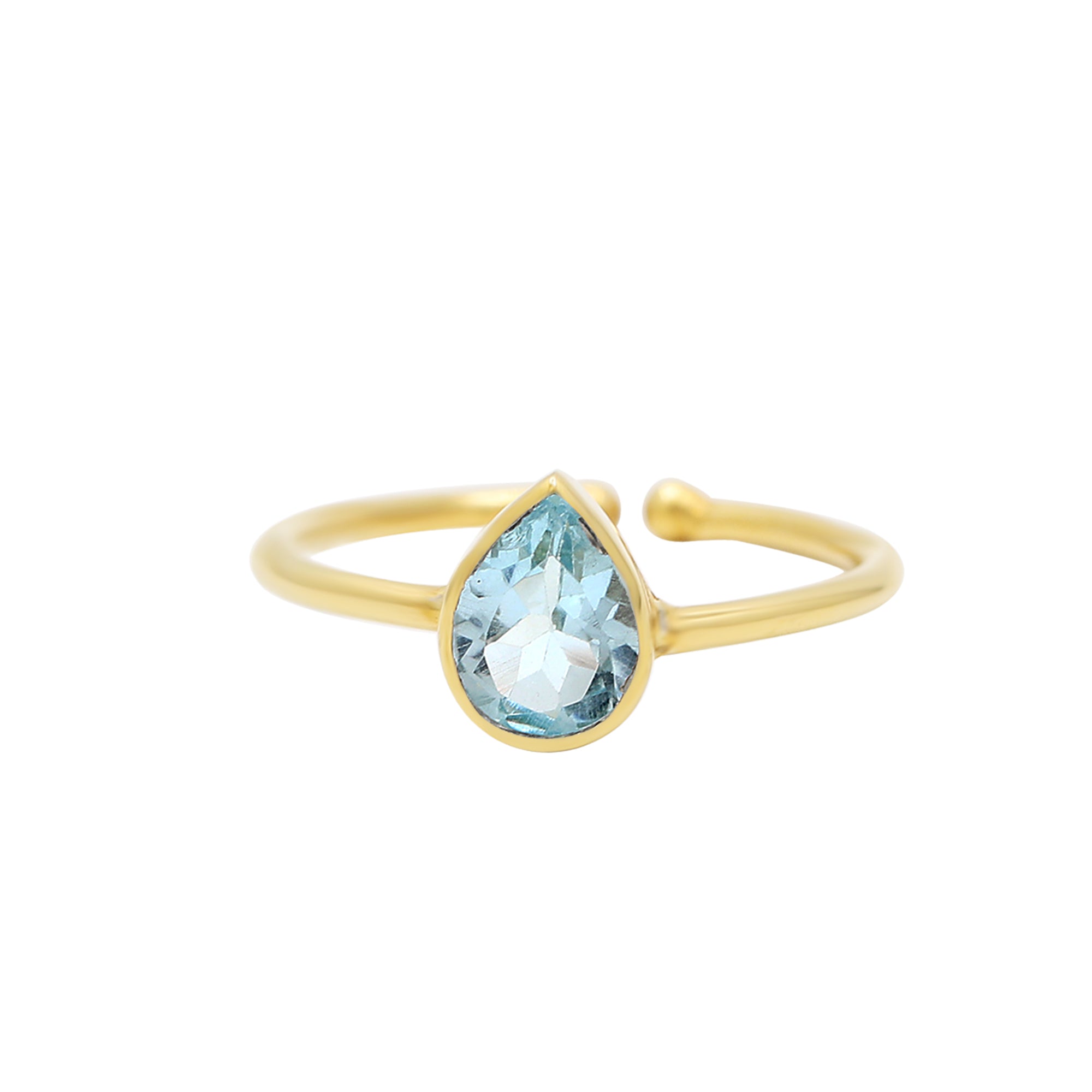 925 Silver Blue Topaz Adjustable Gold Plated Ring