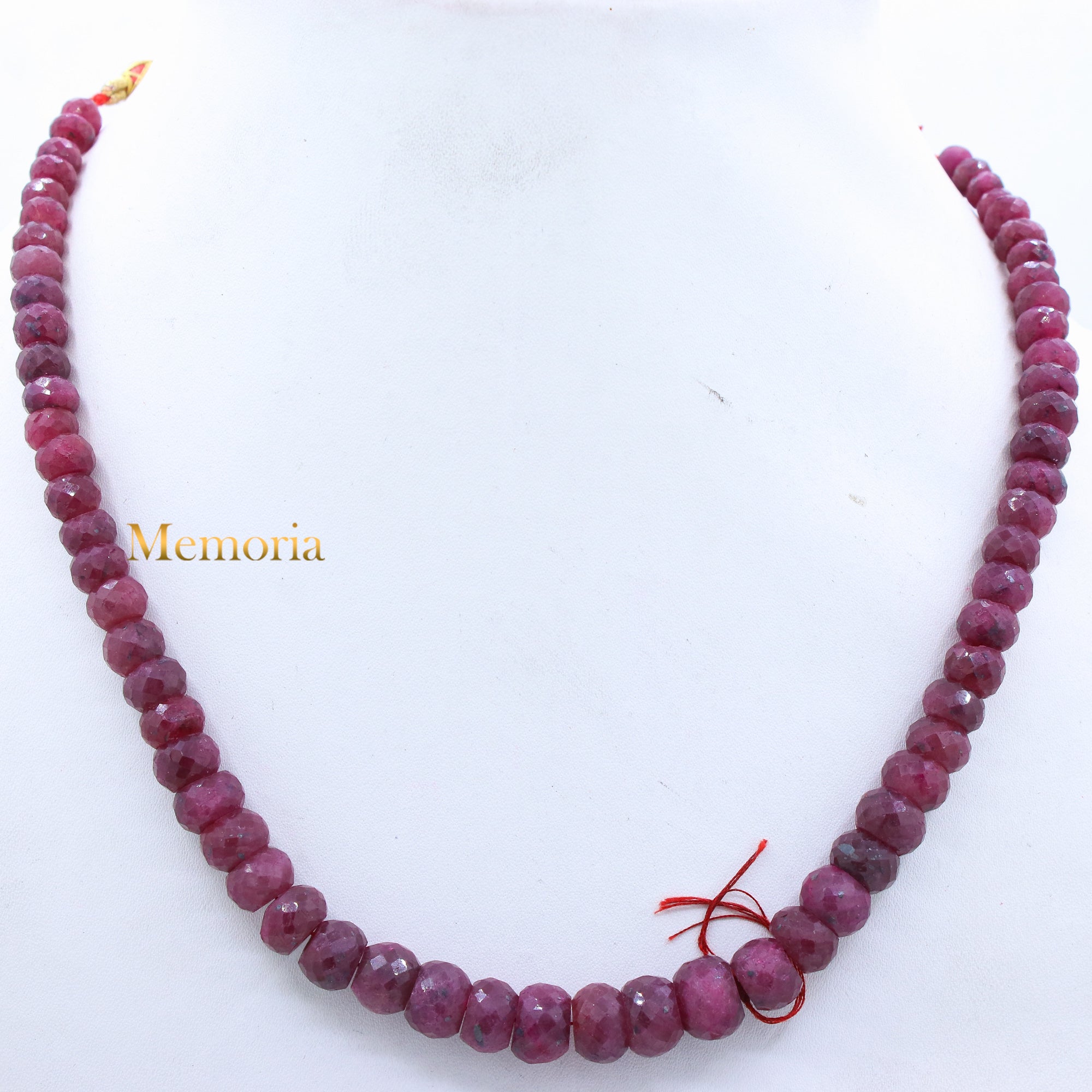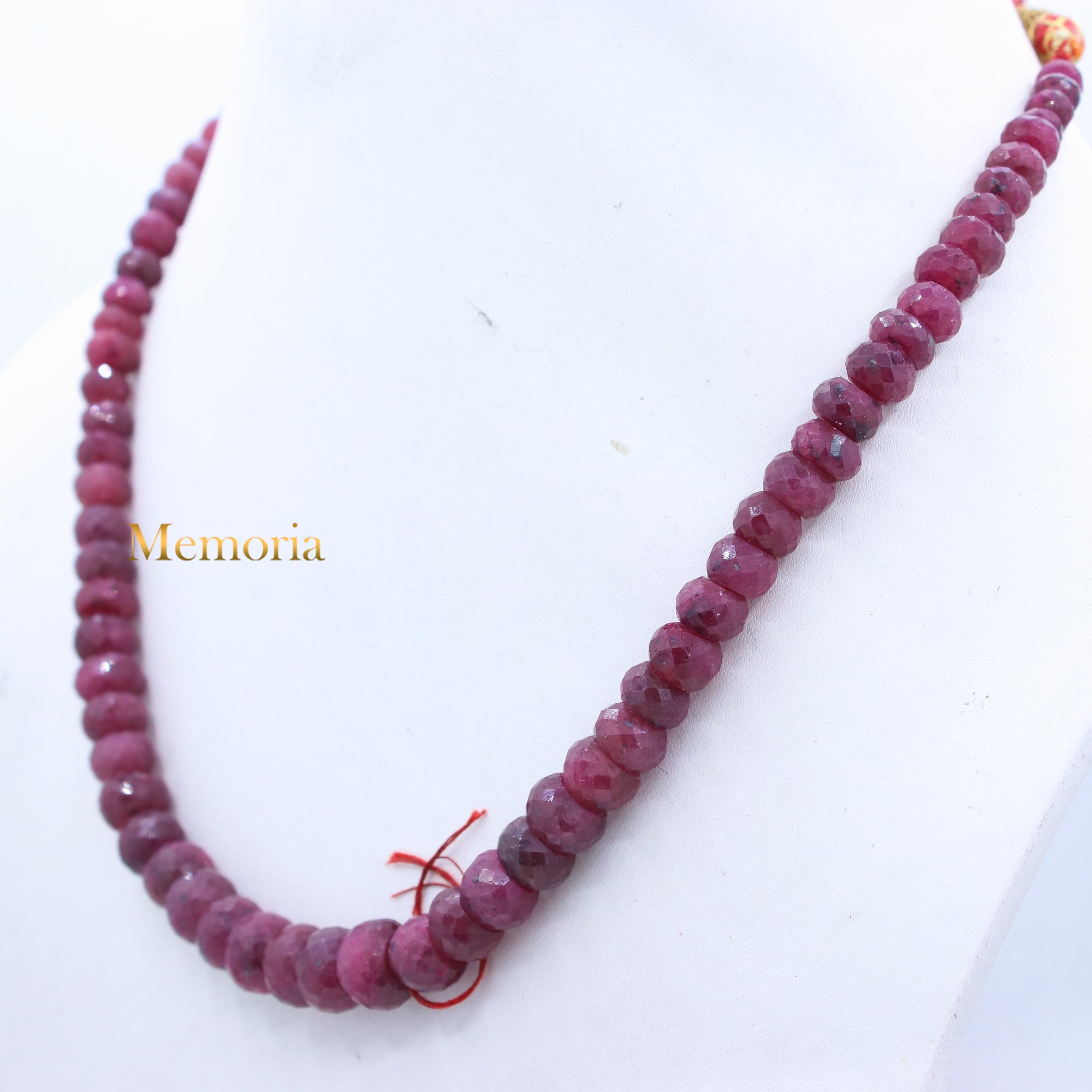 Certified 1 Line Natural Ruby Round Faceted Spiritual Healing Gemstone Beads Strand Necklace