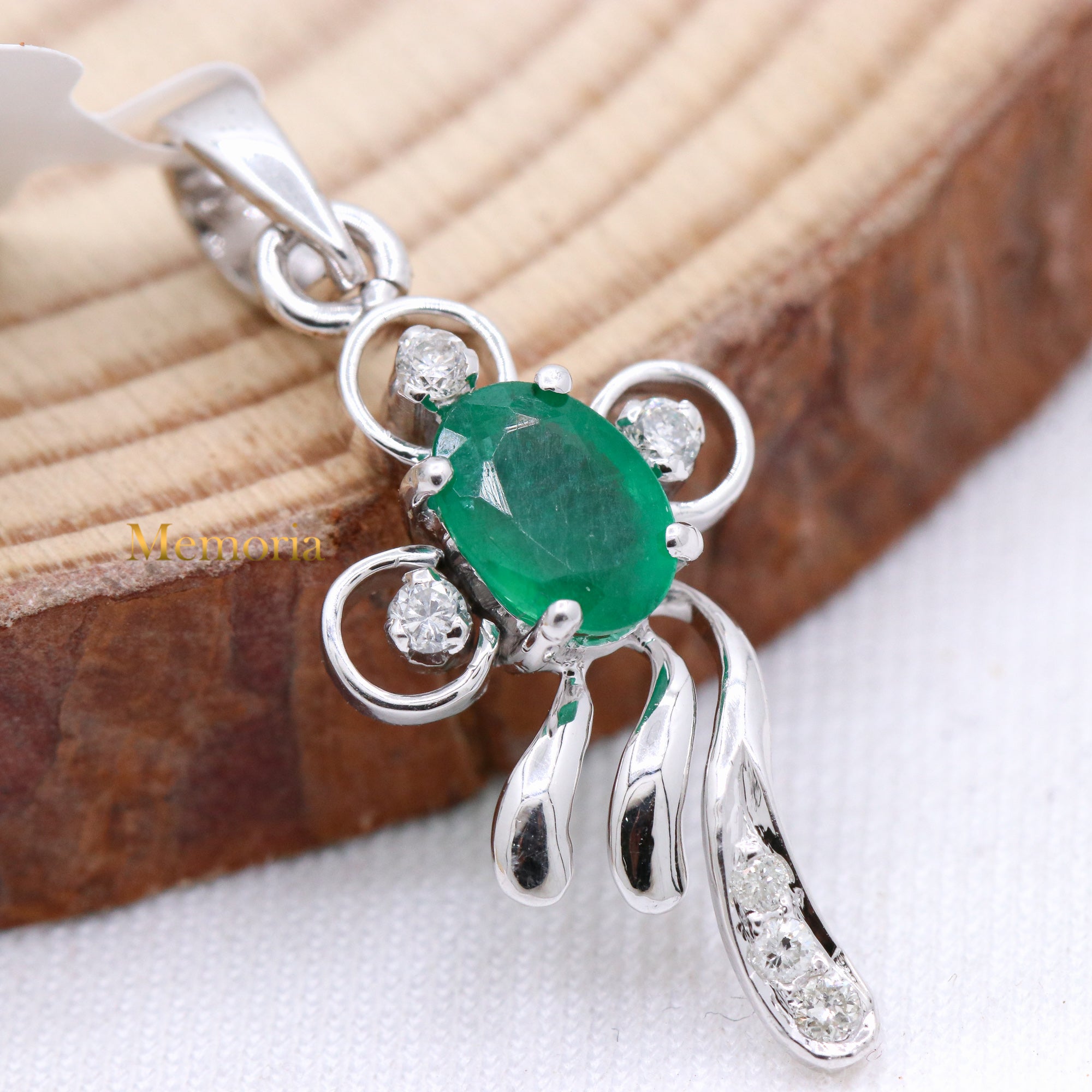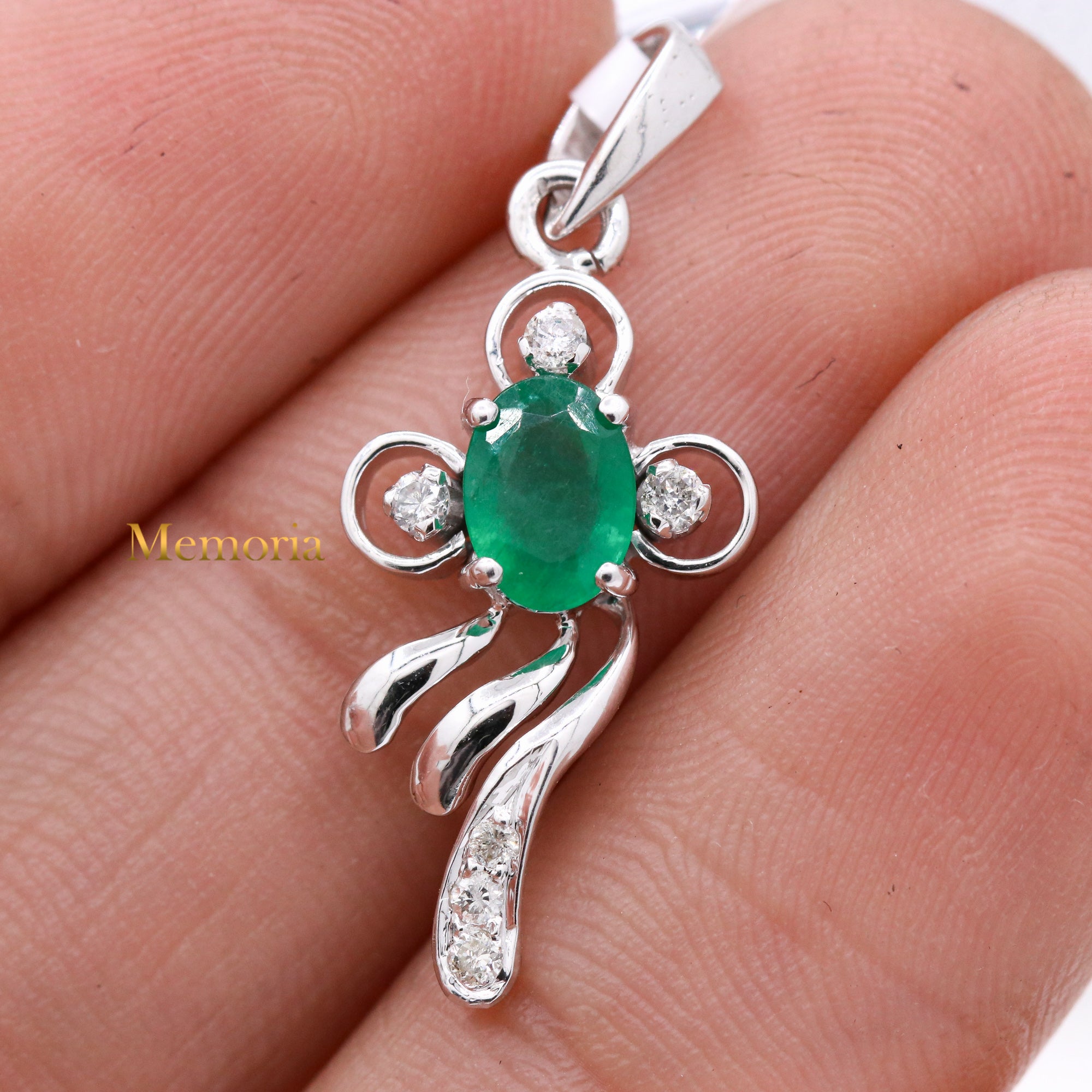Buy Best Quality Certified Birthstone Natural Emerald Oval Shaped Faceted Cut Spiritual Chakra Healing Gemstone With Diamond Pendant In 18k White Gold