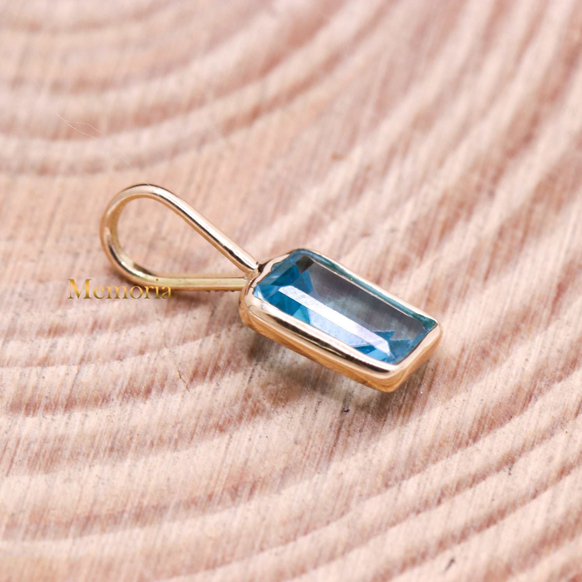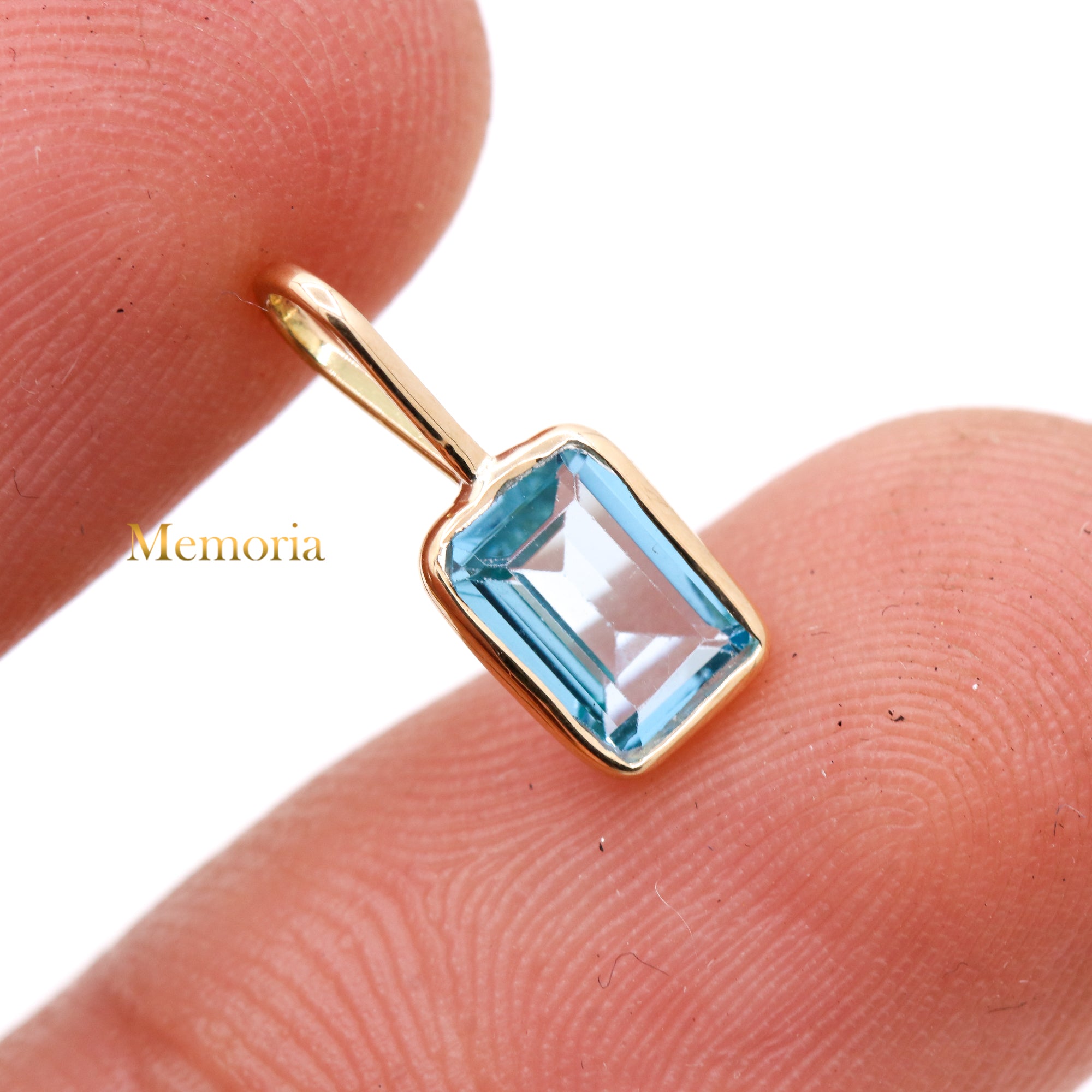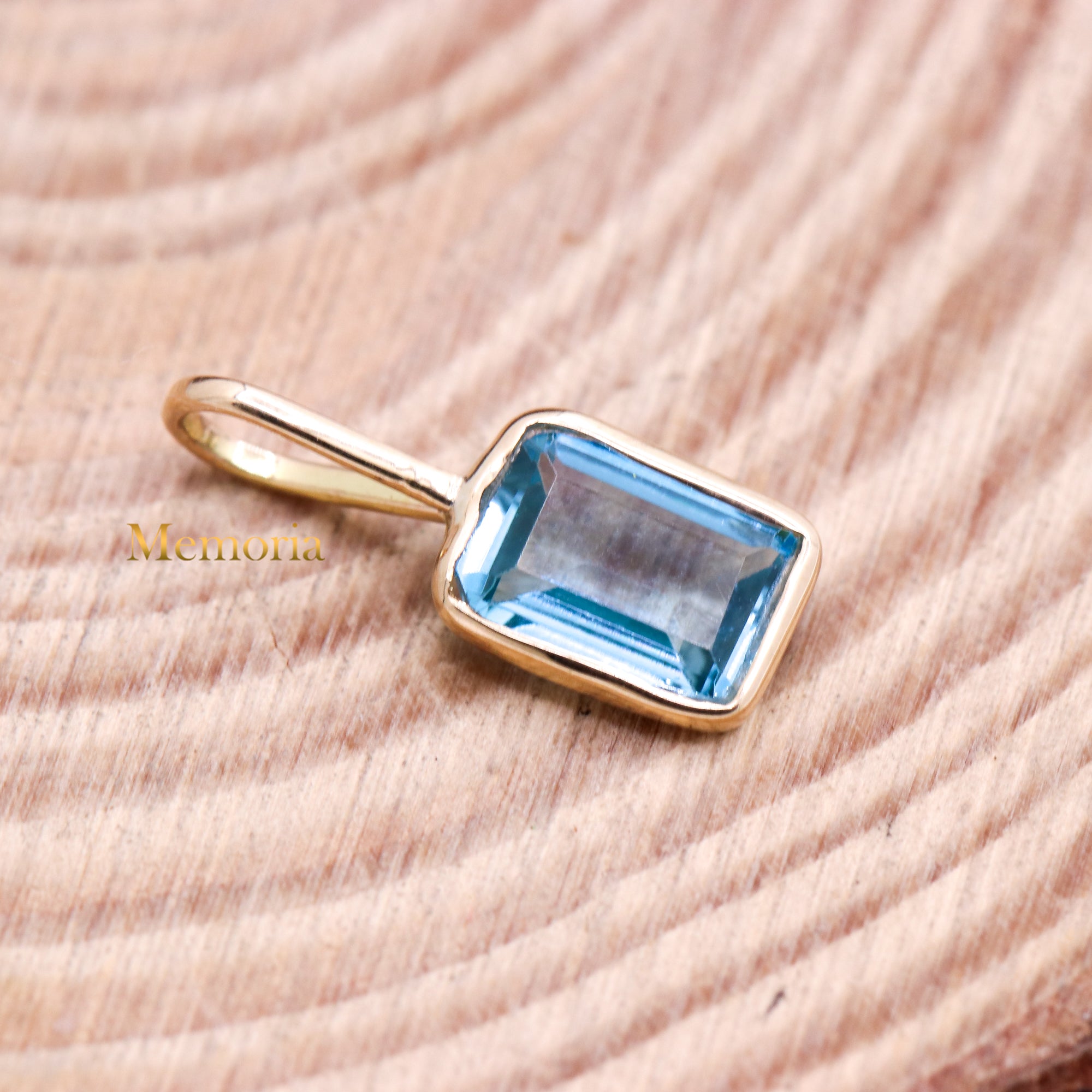 Buy Best Quality Certified Beautiful Natural Blue Topaz Rectangle Shaped Faceted Cut Spiritual Chakra Healing Gemstone Pendant In 14k Yellow Gold