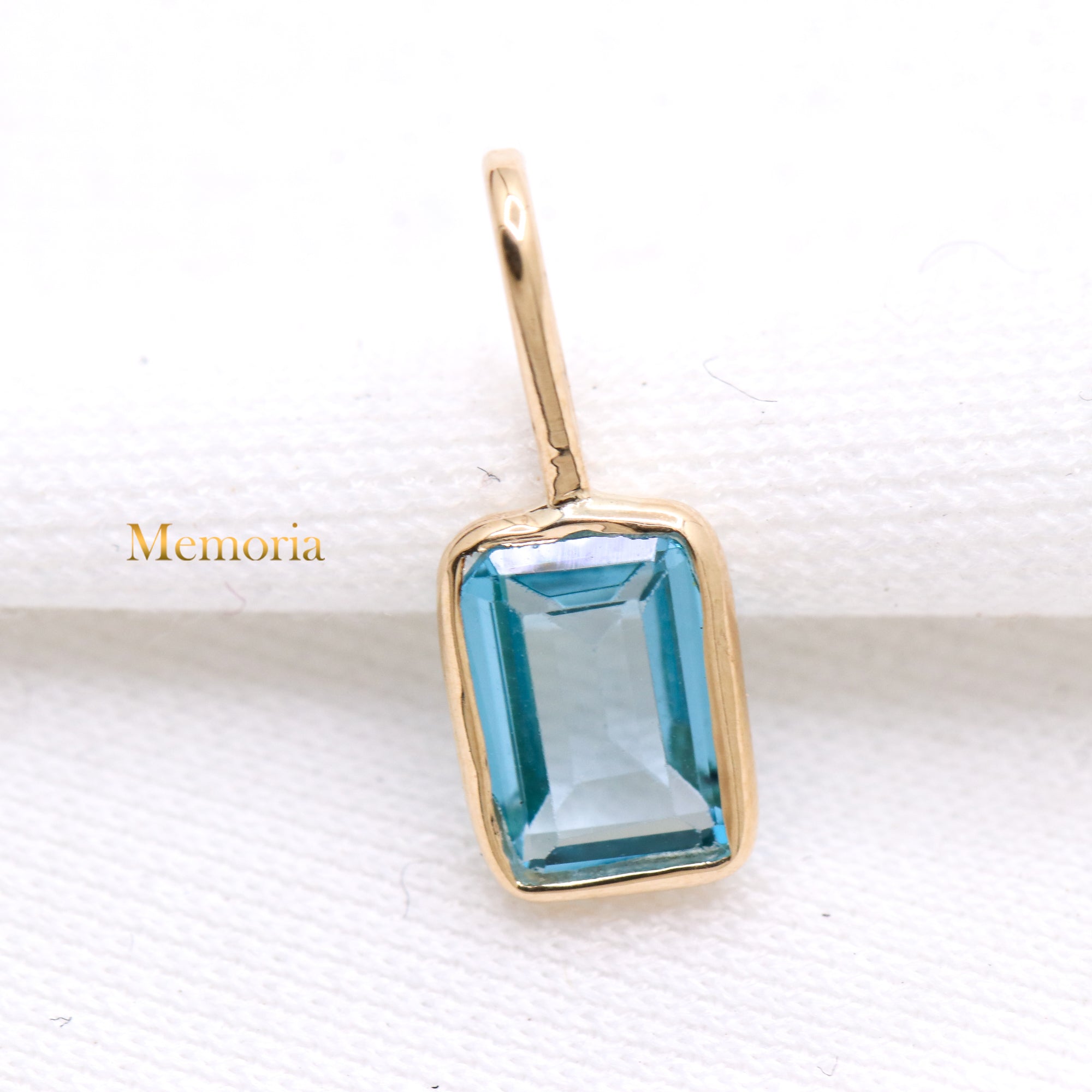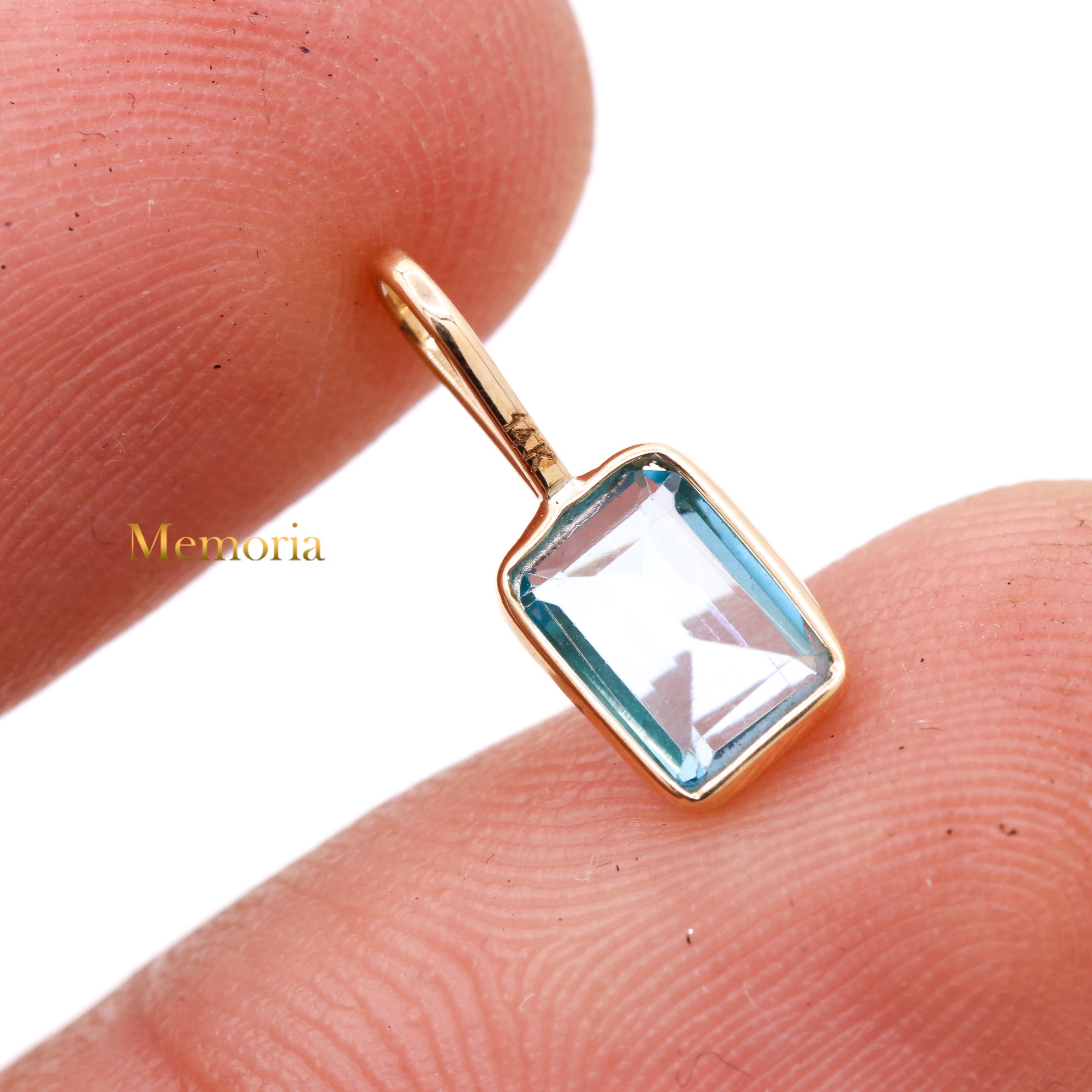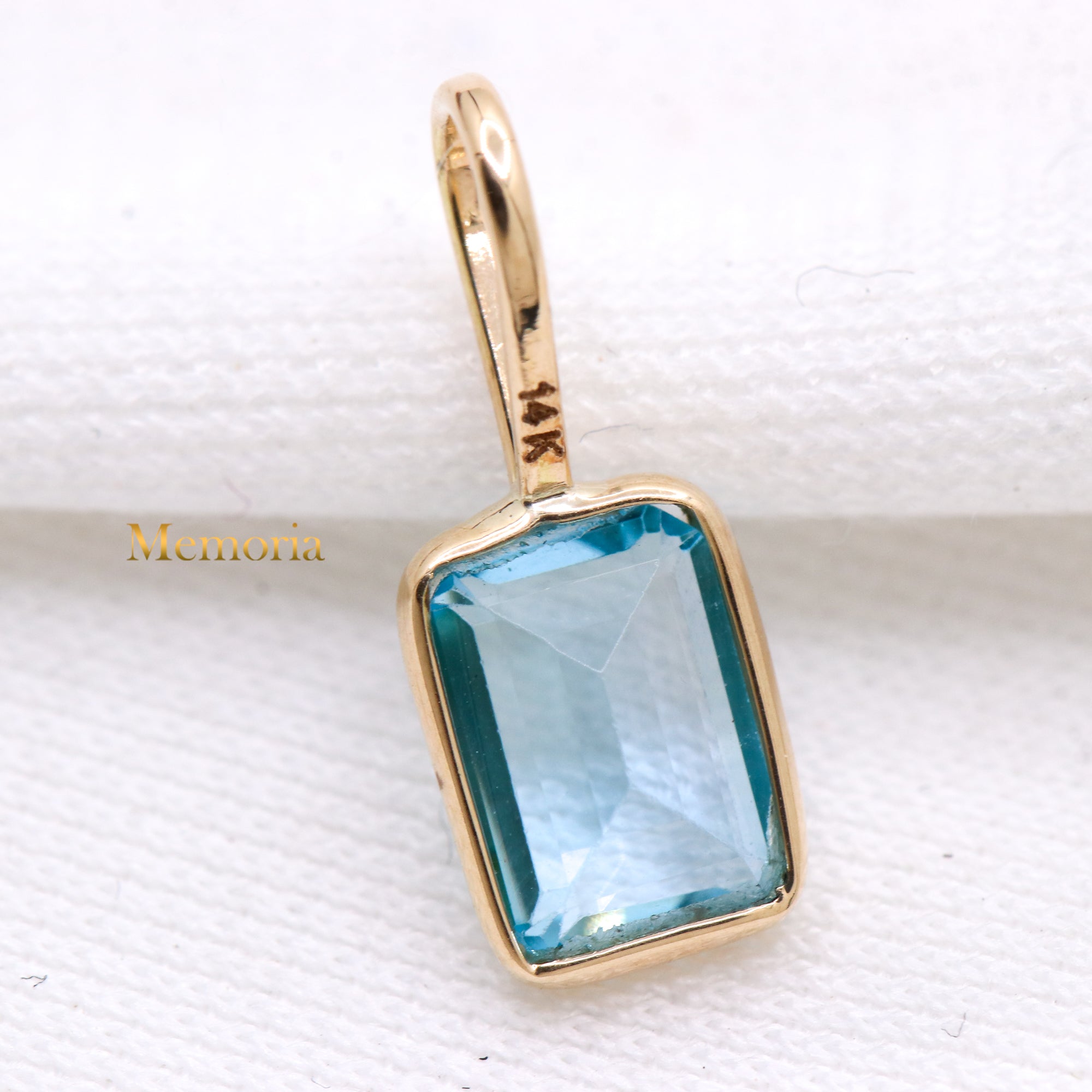 Buy Best Quality Certified Beautiful Natural Blue Topaz Rectangle Shaped Faceted Cut Spiritual Chakra Healing Gemstone Pendant In 14k Yellow Gold
