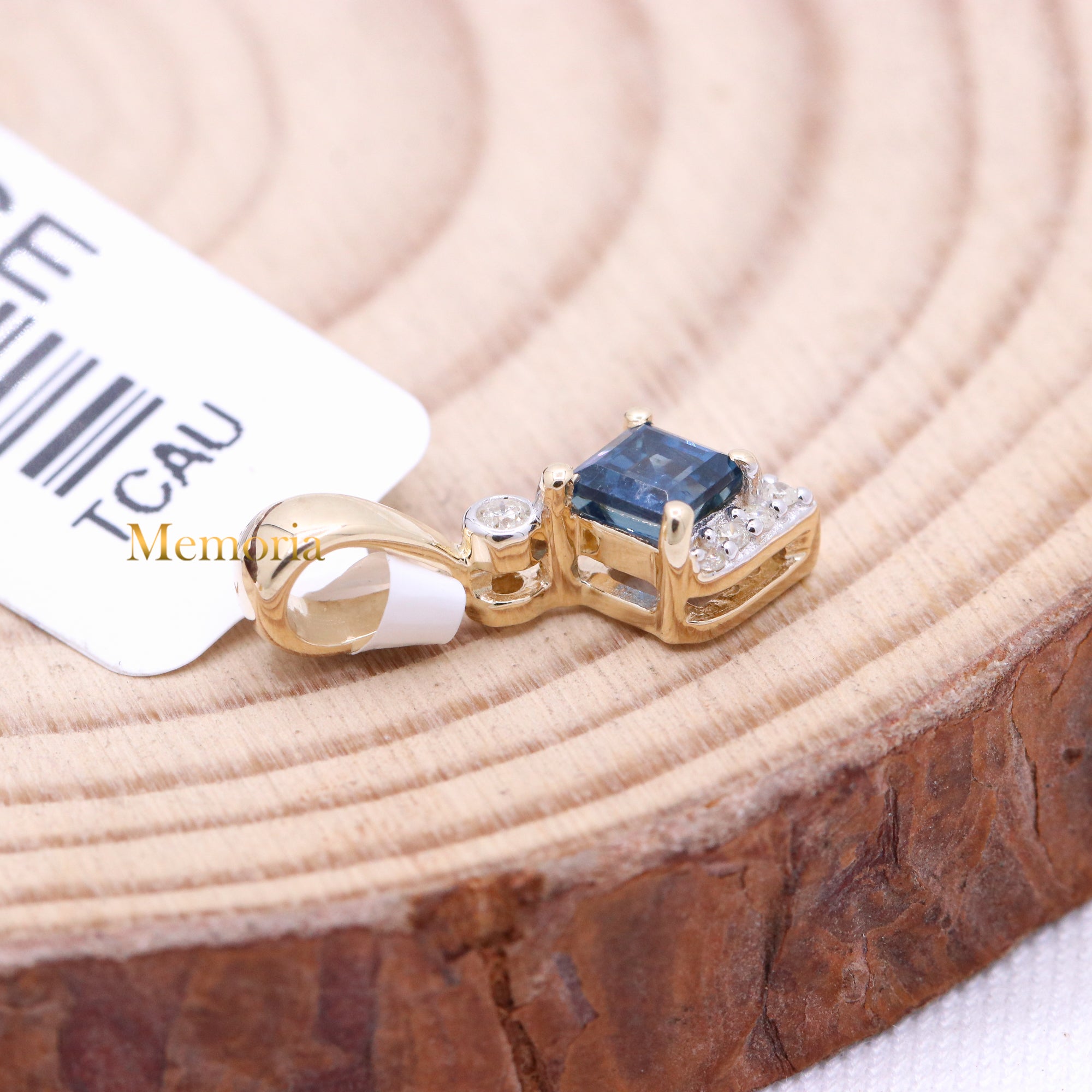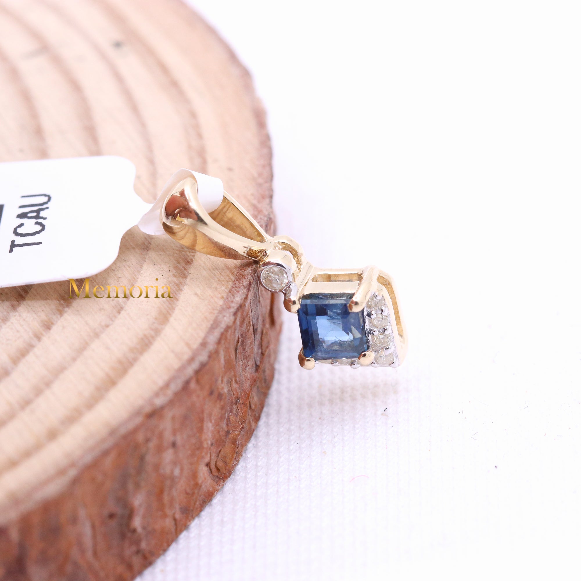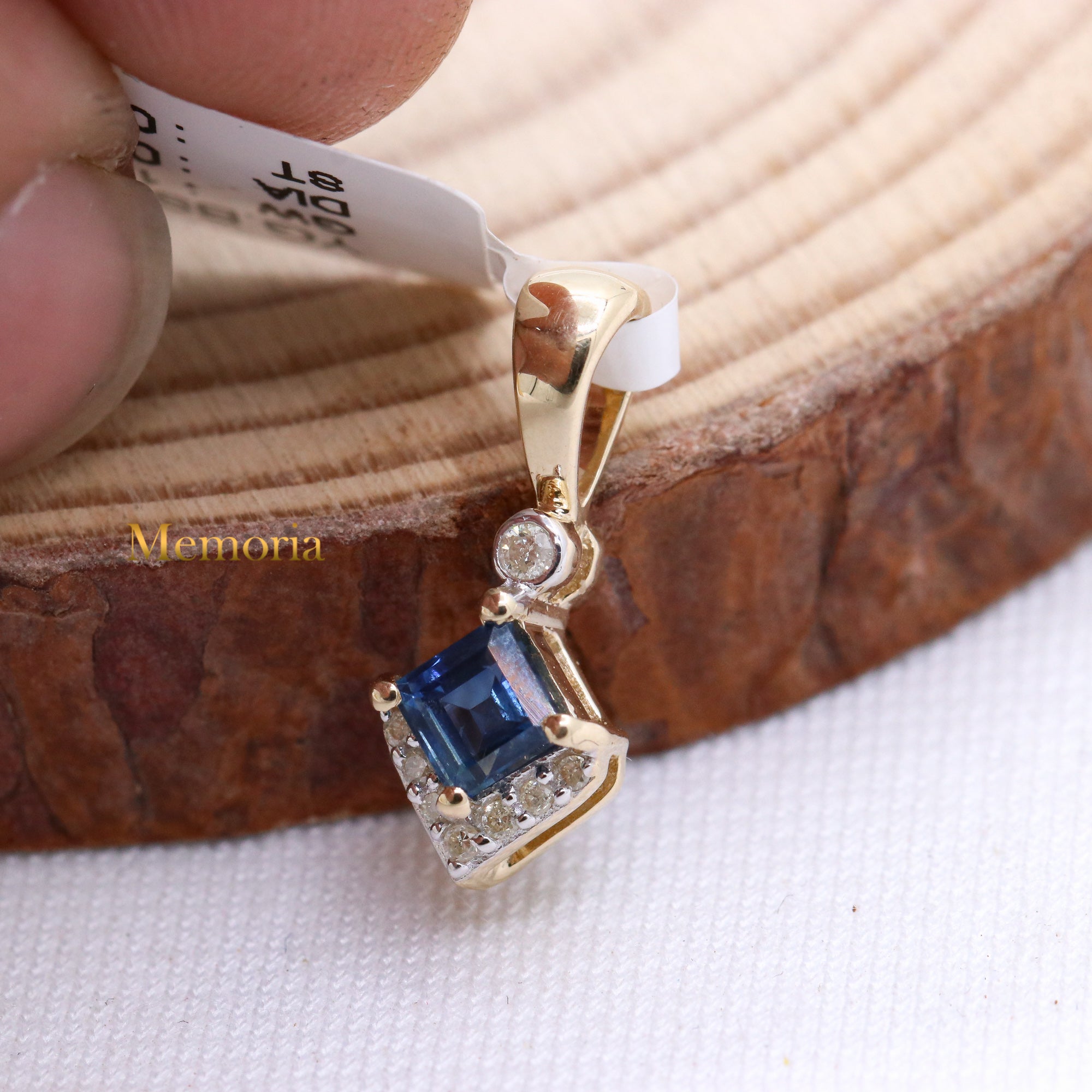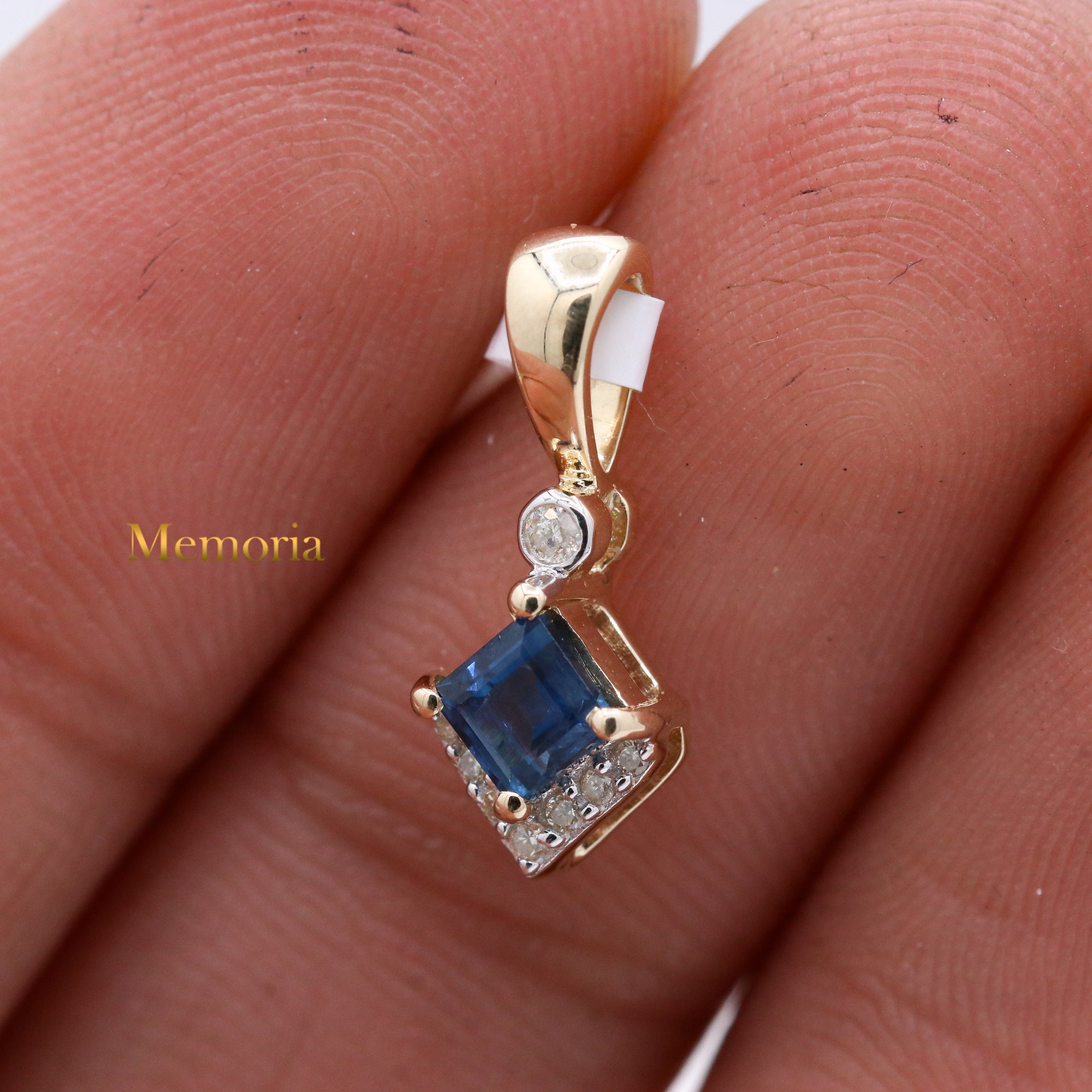 Buy Best Quality Certified Classy Natural Blue Sapphire Square Shaped Faceted Cut Spiritual Chakra Healing Gemstone With Diamond Pendant In 14k Yellow Gold