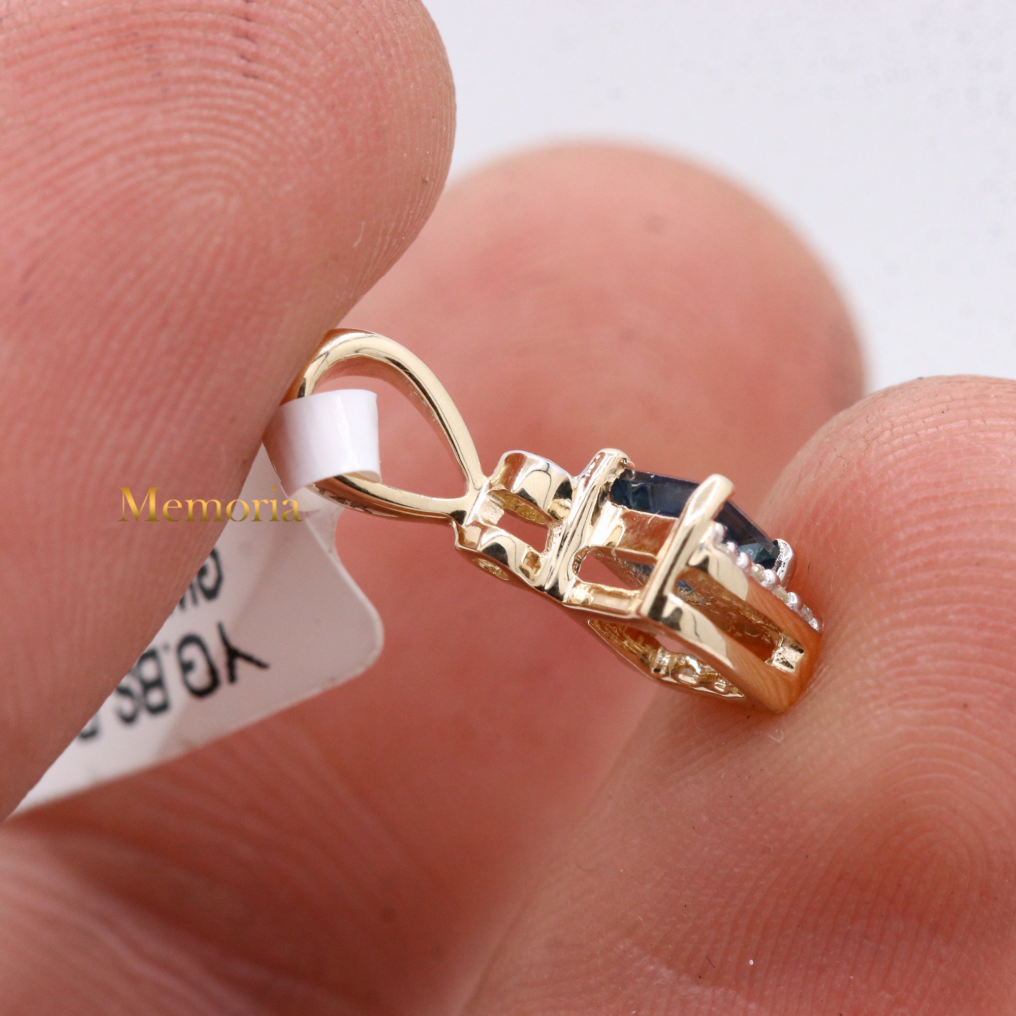 Natural Blue Sapphire Gemstone With Diamond Pendant 14k Yellow Gold