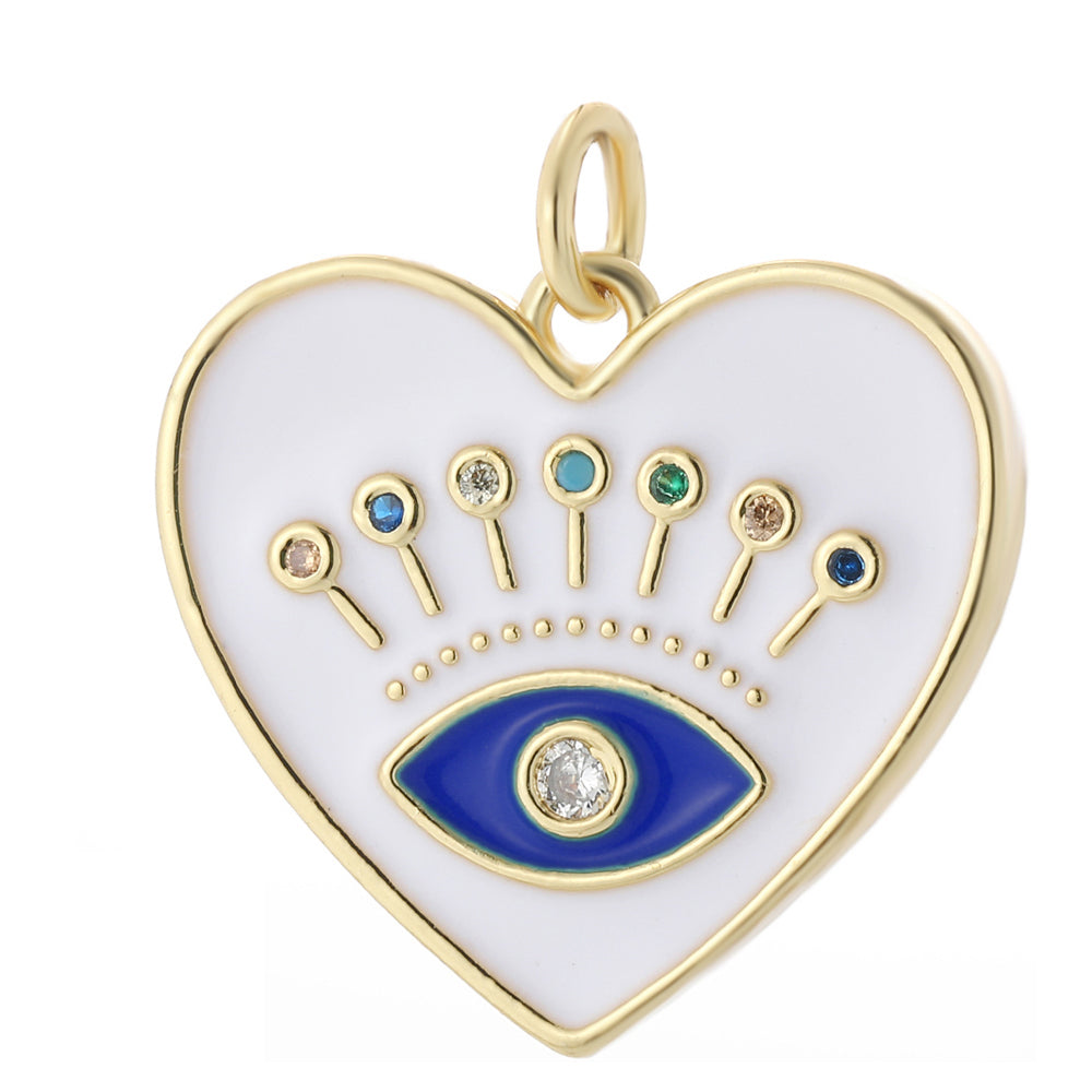 18k Gold Plated Heart Evil Eye Multi Stone Charm Pendant