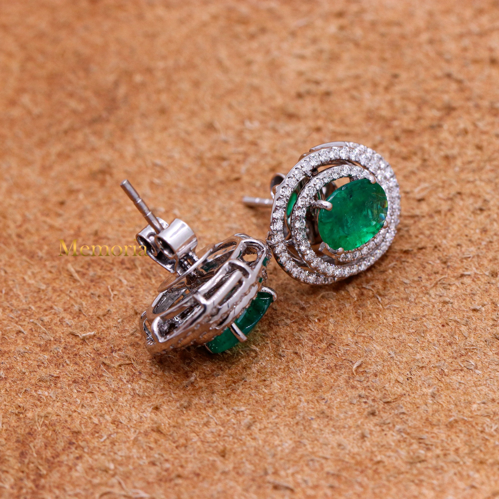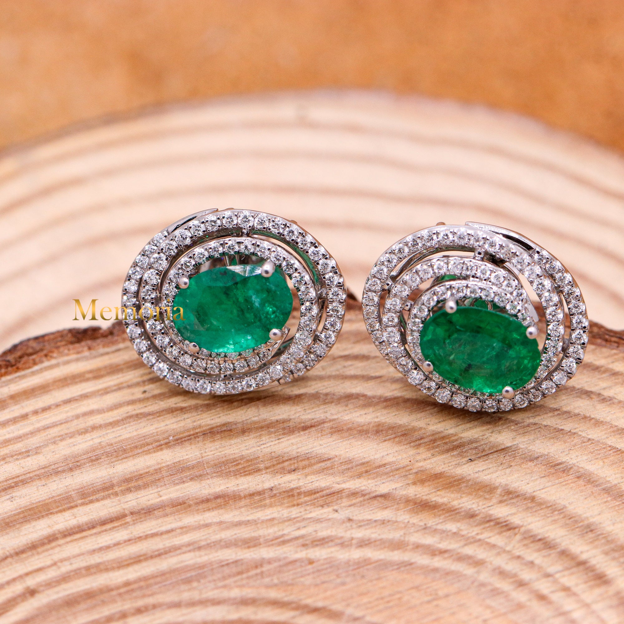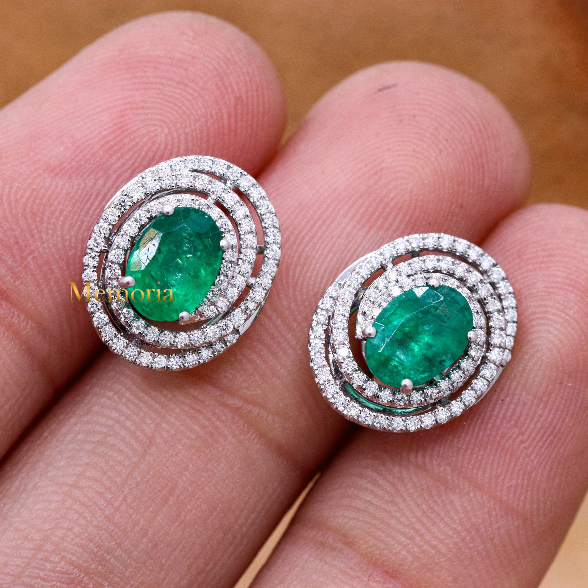 Buy Best Quality Certified Designer Natural Emerald Oval Shaped Faceted Cut Spiritual Chakra Healing Gemstone With Diamond Earring In 18k White Gold