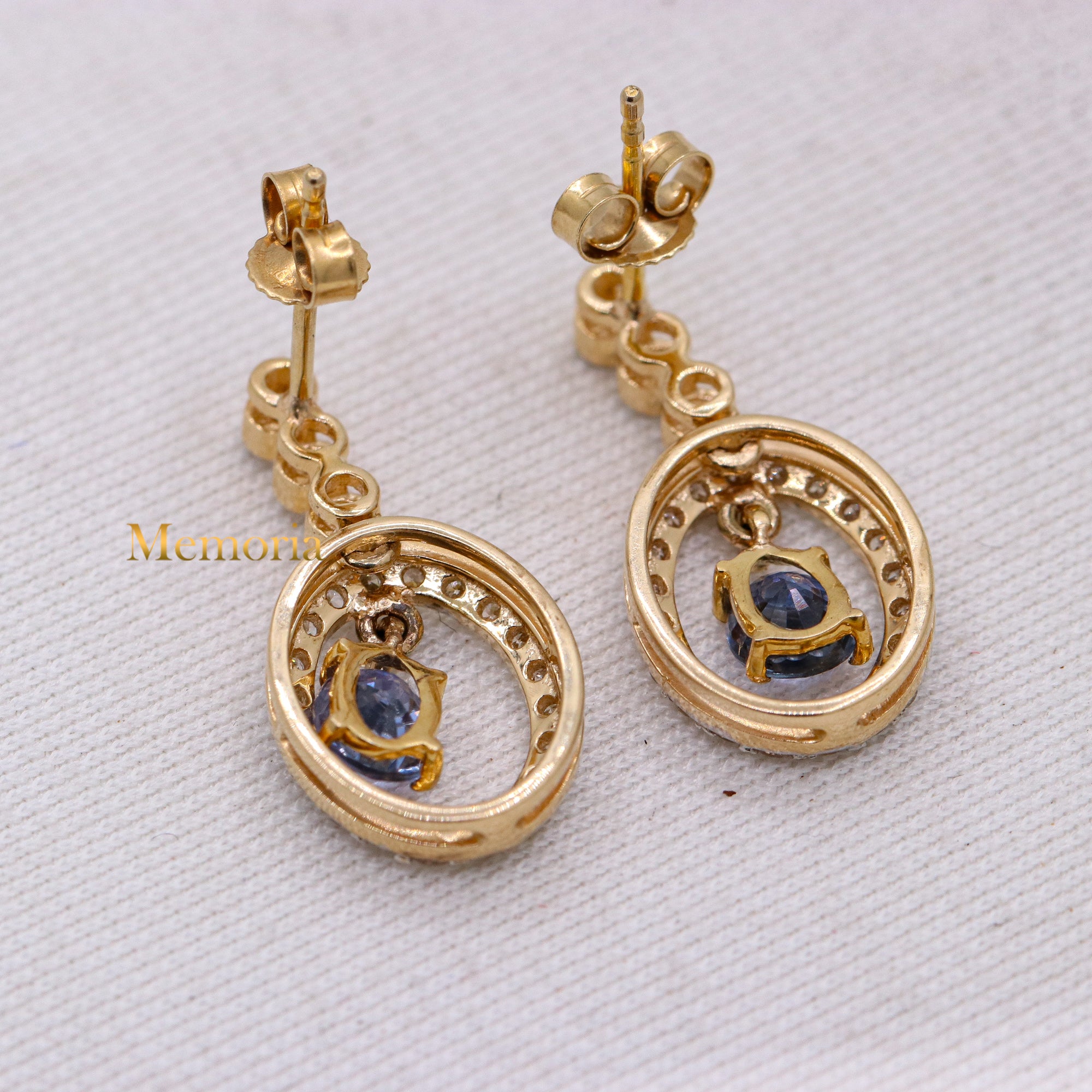 Buy Best Quality Certified Designer Natural Blue Sapphire Oval Shaped Faceted Cut Spiritual Chakra Healing Gemstone With Diamond Drop Earring In 14k Yellow Gold