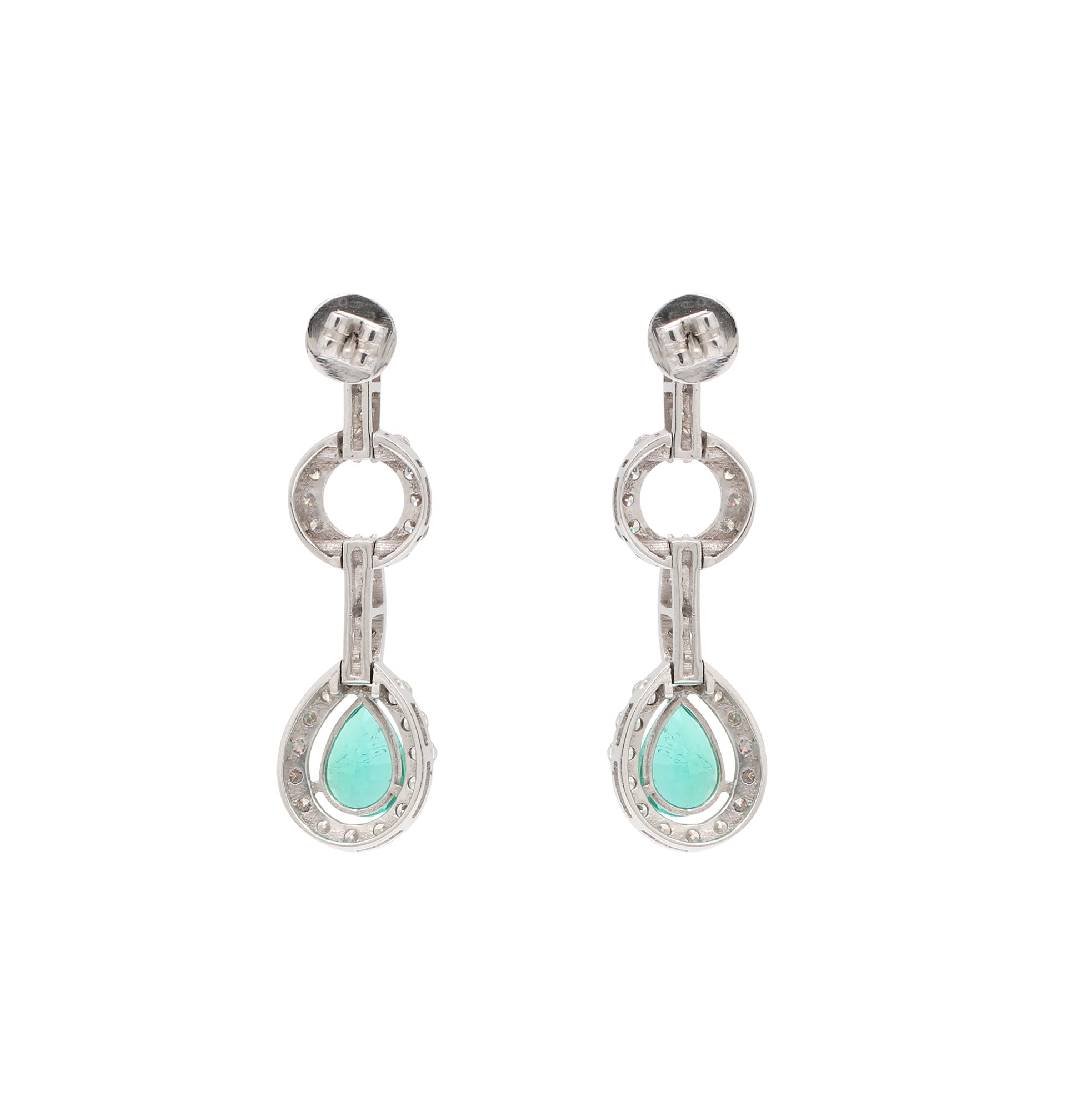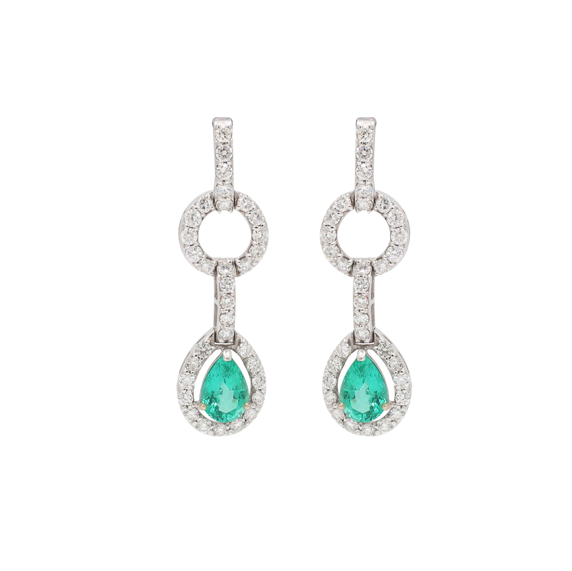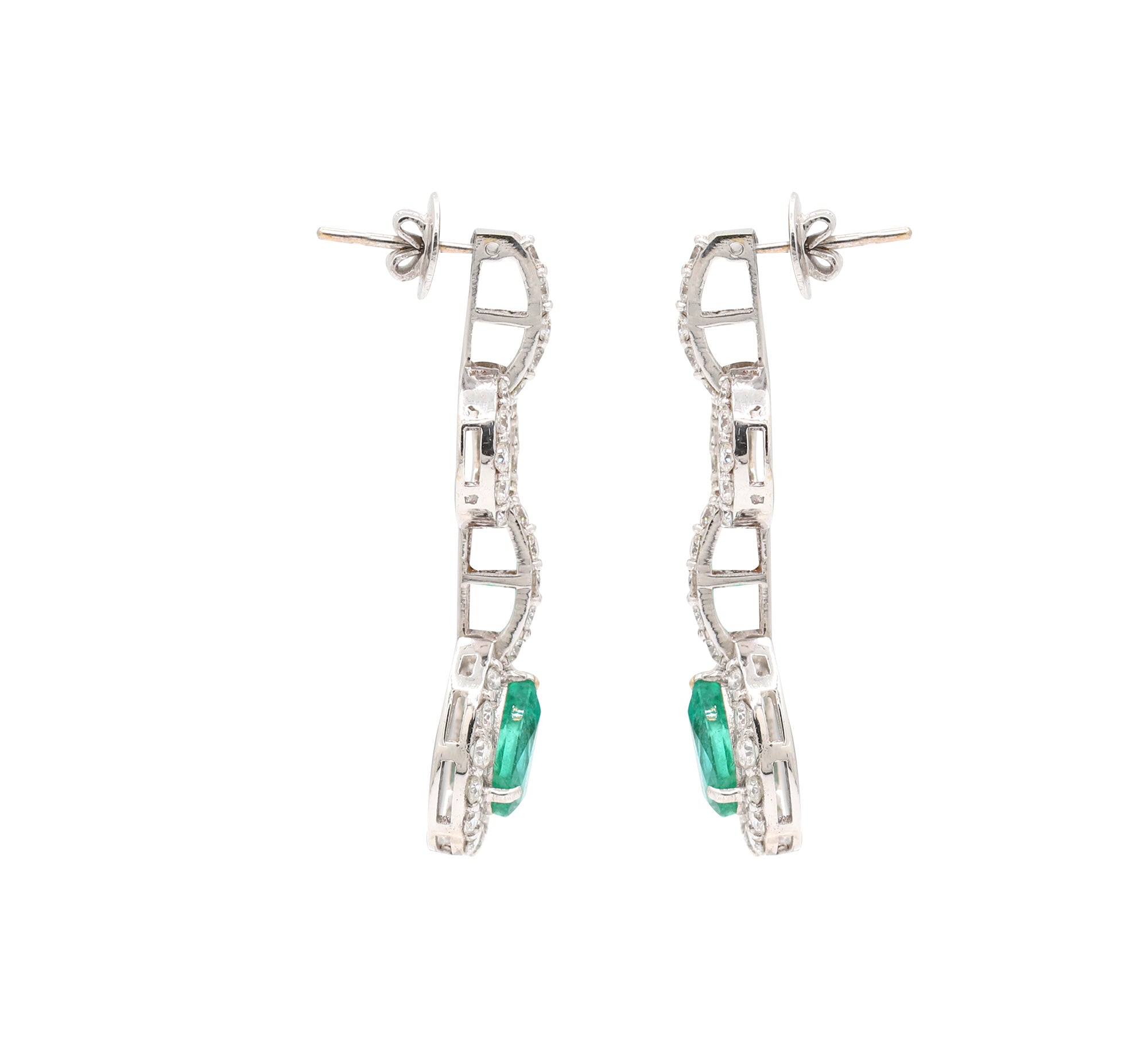 Natural Emerald Gemstone And Diamond 18k White Gold Dangle Earring
