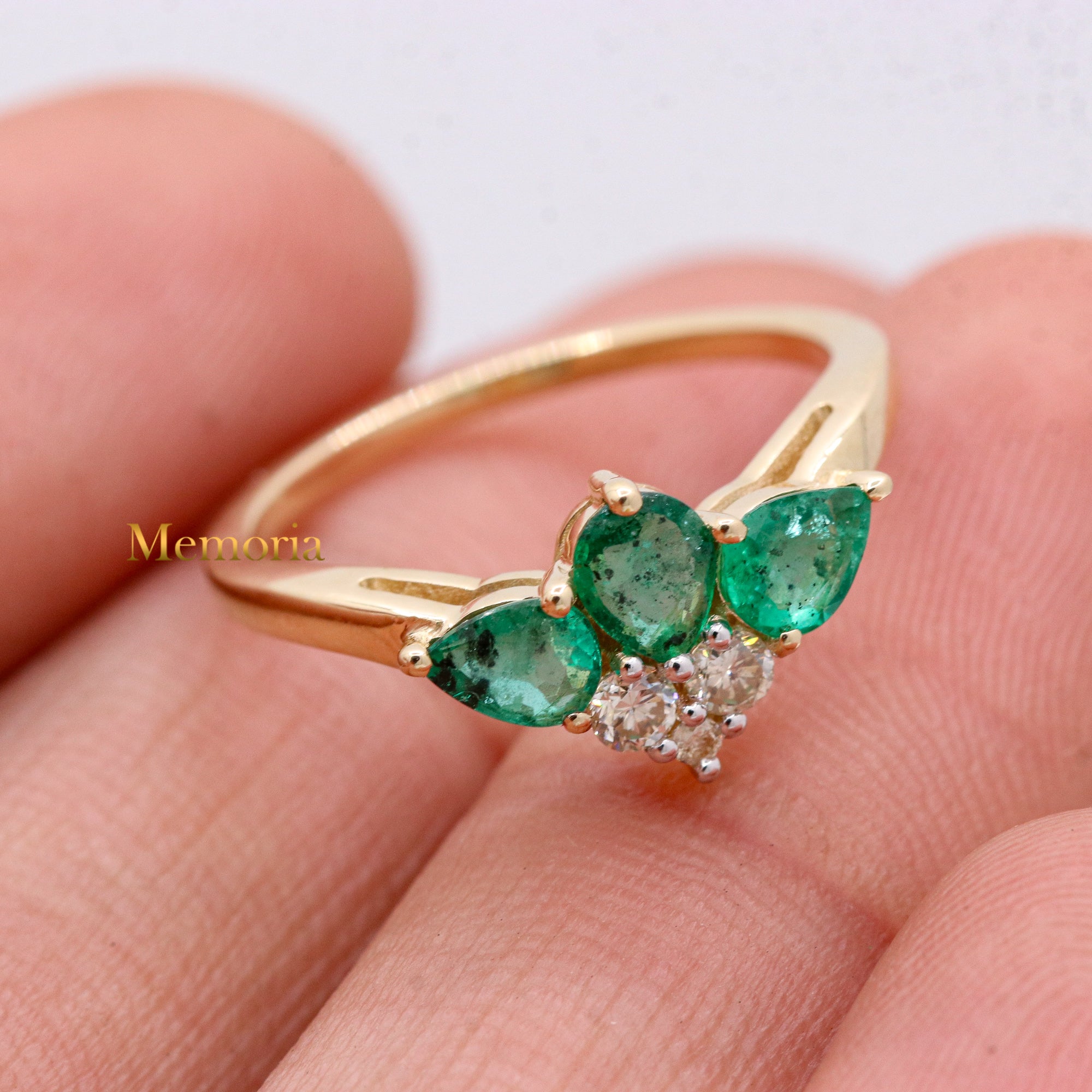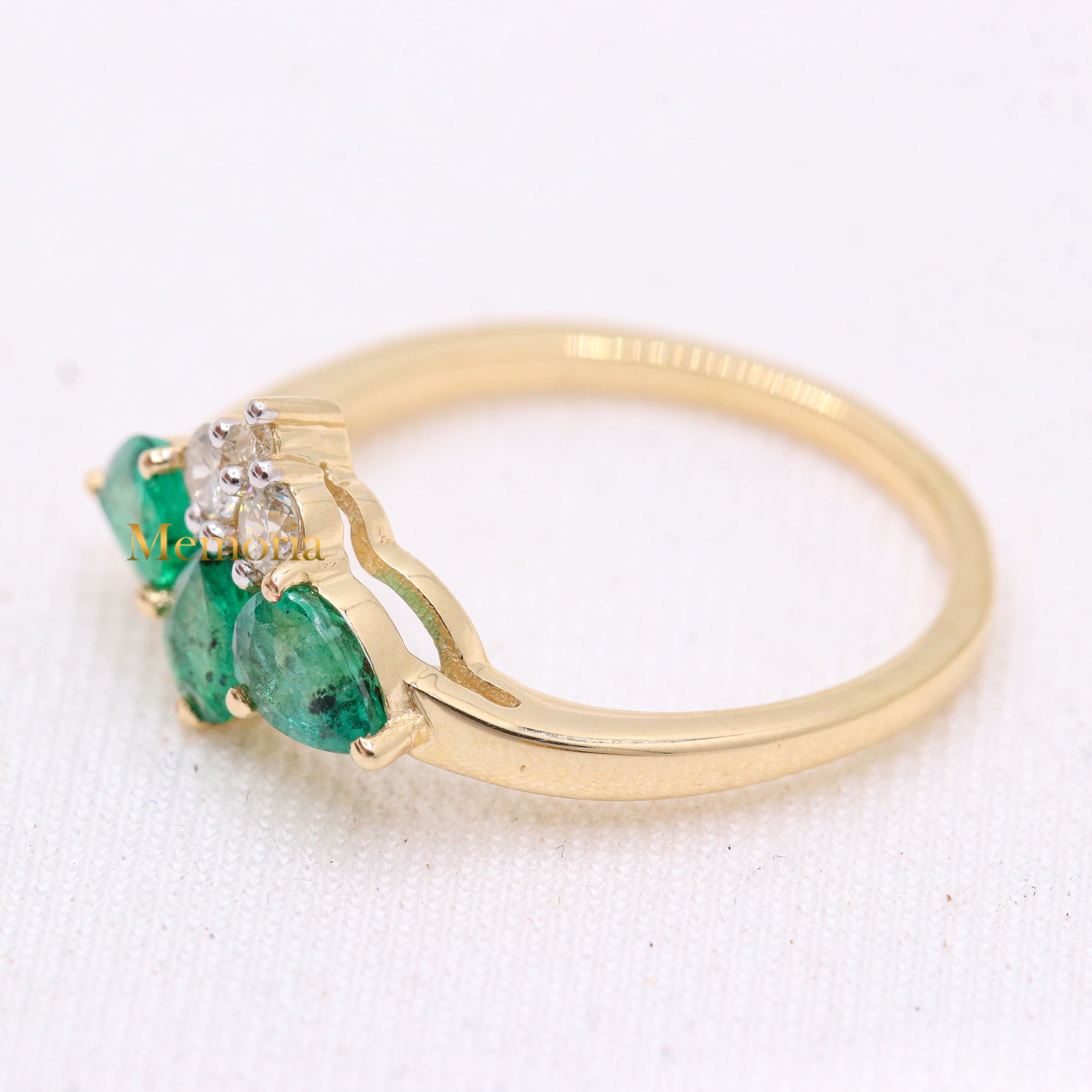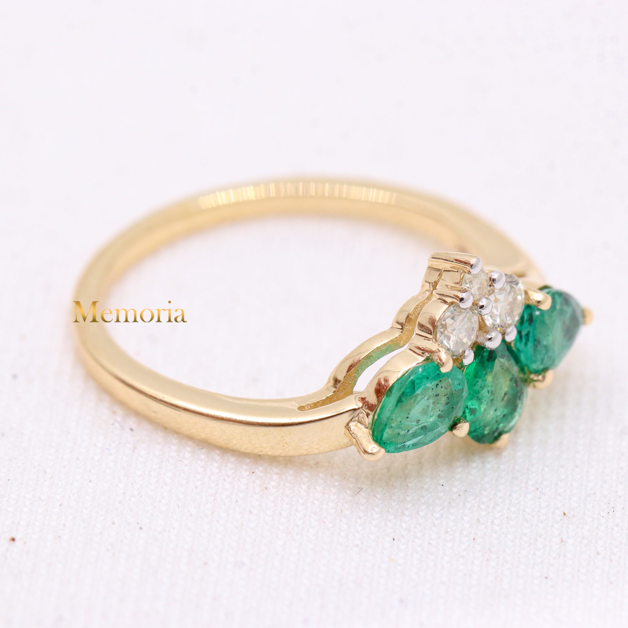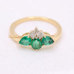Natural Emerald Gemstone & Diamond Womens Ring In 14k Yellow Gold