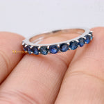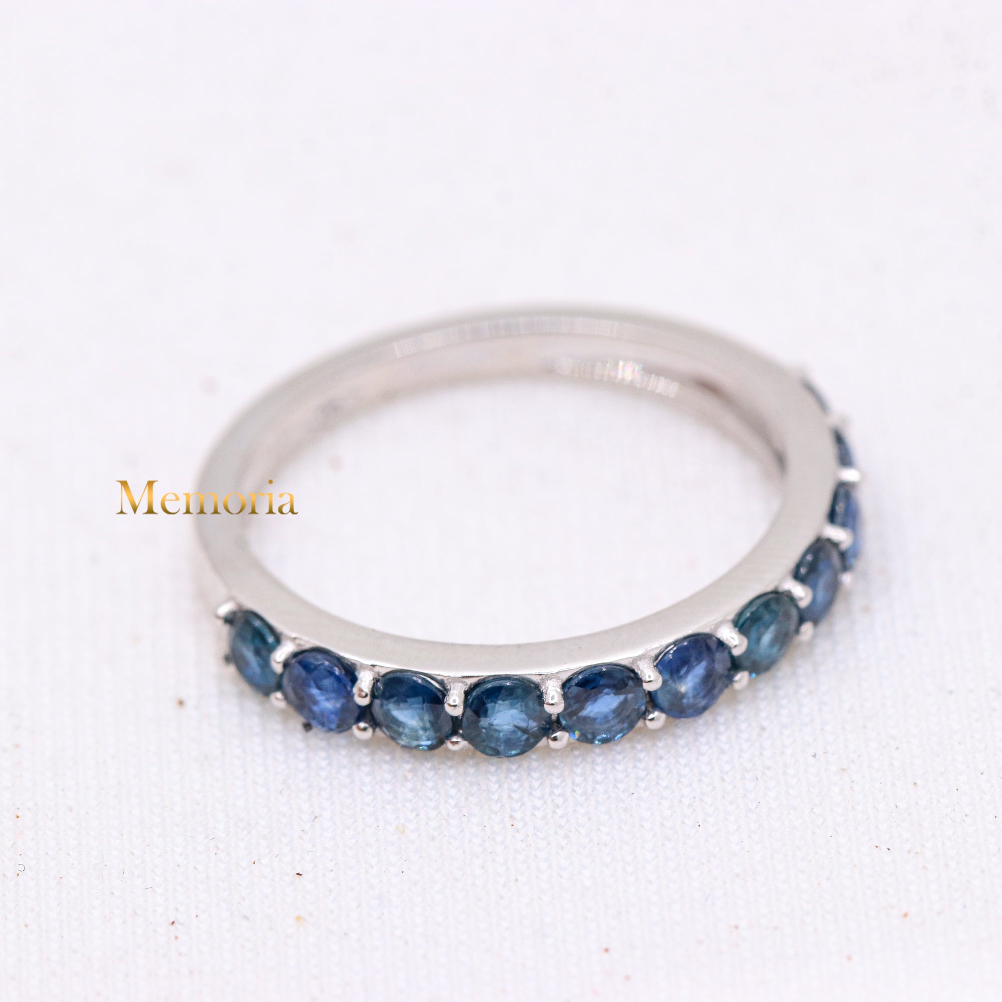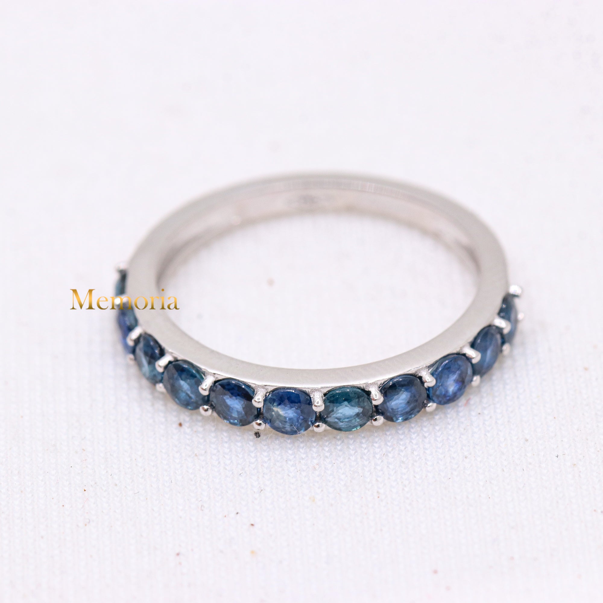 Classy Natural Blue Sapphire Gemstone 18k White Gold Band Ring