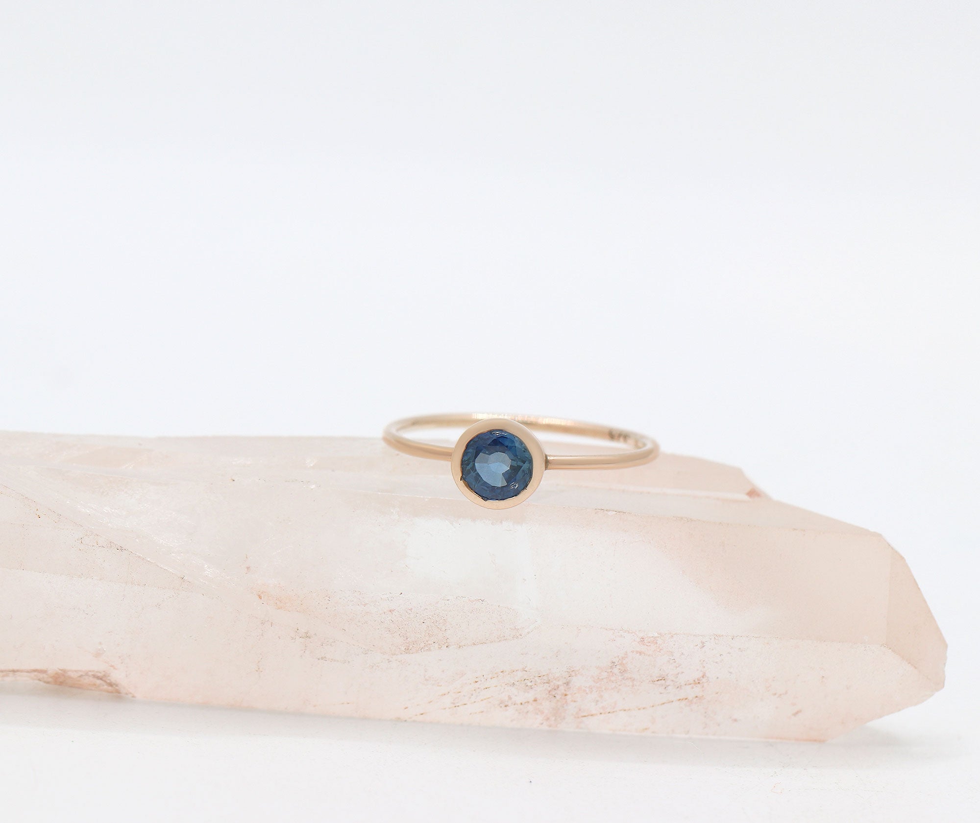 Natural Round Shaped Blue Sapphire Gemstone Gold Ring